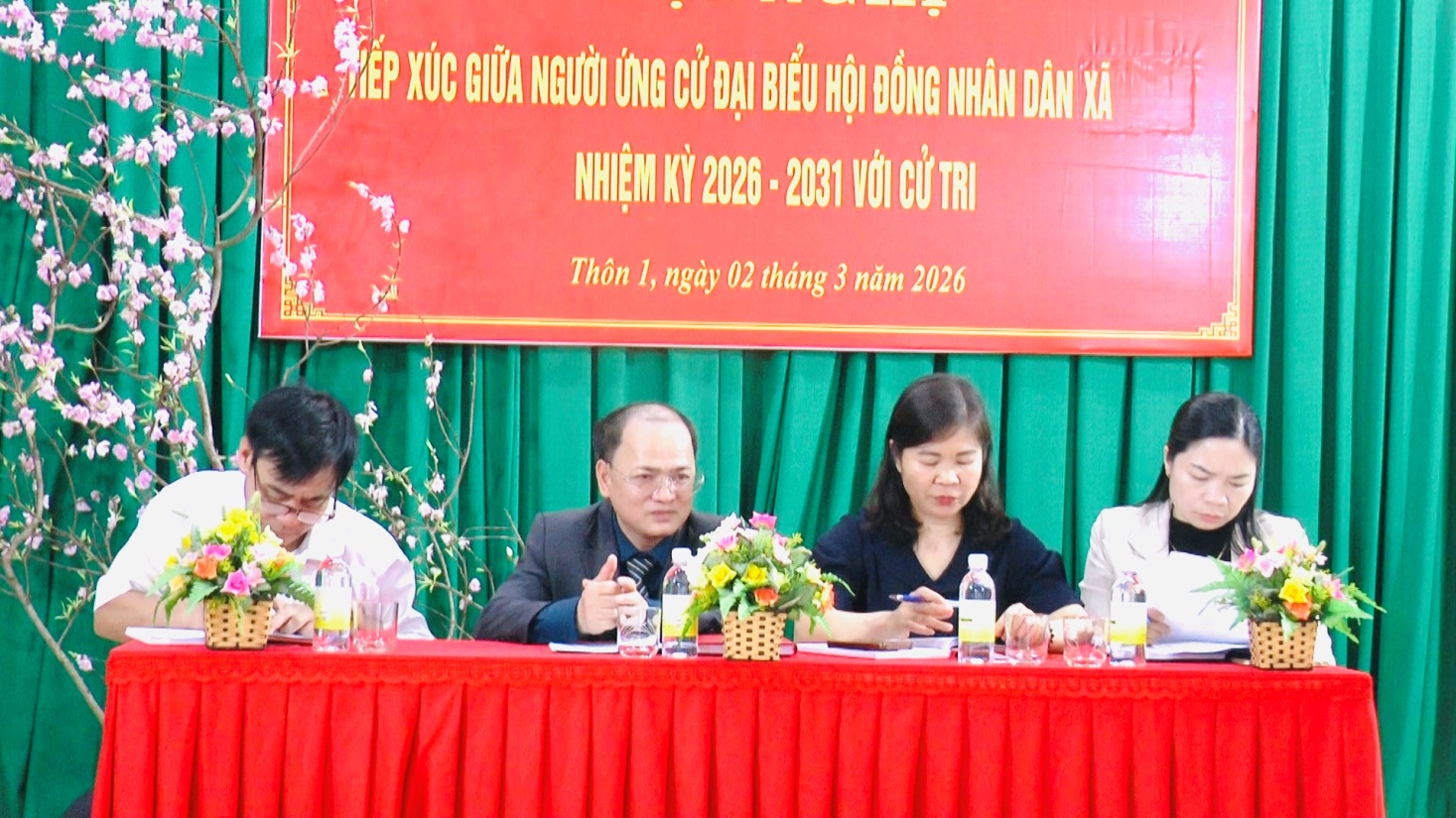 Tại buổi tiếp xúc, cử tri thôn 1 bày tỏ sự tin tưởng, kỳ vọng vào vai trò lãnh đạo, điều hành của cấp ủy, chính quyền địa phương; đồng thời đề nghị, nếu trúng cử, đại biểu HĐND xã tiếp tục sâu sát cơ sở, quan tâm nhiều hơn đến phát triển kinh tế, hạ tầng dân sinh và giải quyết kịp thời các kiến nghị chính đáng của nhân dân.