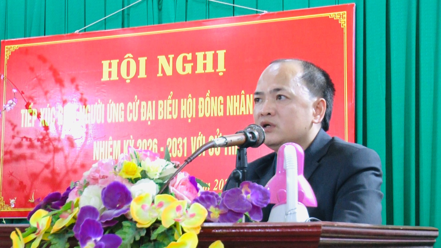 Tại hội nghị, đại diện Ủy ban MTTQ xã đã công bố tiểu sử tóm tắt của người ứng cử theo quy định của Luật Bầu cử đại biểu Quốc hội và đại biểu Hội đồng nhân dân. Theo đó, đồng chí Liễu Anh Minh, Bí thư Đảng ủy, Chủ tịch HĐND xã tham gia ứng cử đại biểu HĐND xã nhiệm kỳ 2026 - 2031 tại Đơn vị bầu cử số 03. Trình bày chương trình hành động trước cử tri, đồng chí khẳng định quyết tâm tiếp tục phát huy vai trò hạt nhân lãnh đạo của tổ chức Đảng ở cơ sở; nêu cao tinh thần tiền phong, gương mẫu của người đứng đầu; tăng cường đối thoại, lắng nghe và kịp thời giải quyết những vấn đề nhân dân quan tâm. Chương trình hành động tập trung vào các nhóm nhiệm vụ trọng tâm: thúc đẩy phát triển kinh tế - xã hội bền vững; khai thác hiệu quả tiềm năng, lợi thế địa phương; nâng cao chất lượng các tiêu chí xây dựng nông thôn mới; quan tâm công tác an sinh xã hội, giảm nghèo bền vững; giữ vững quốc phòng - an ninh, trật tự an toàn xã hội.