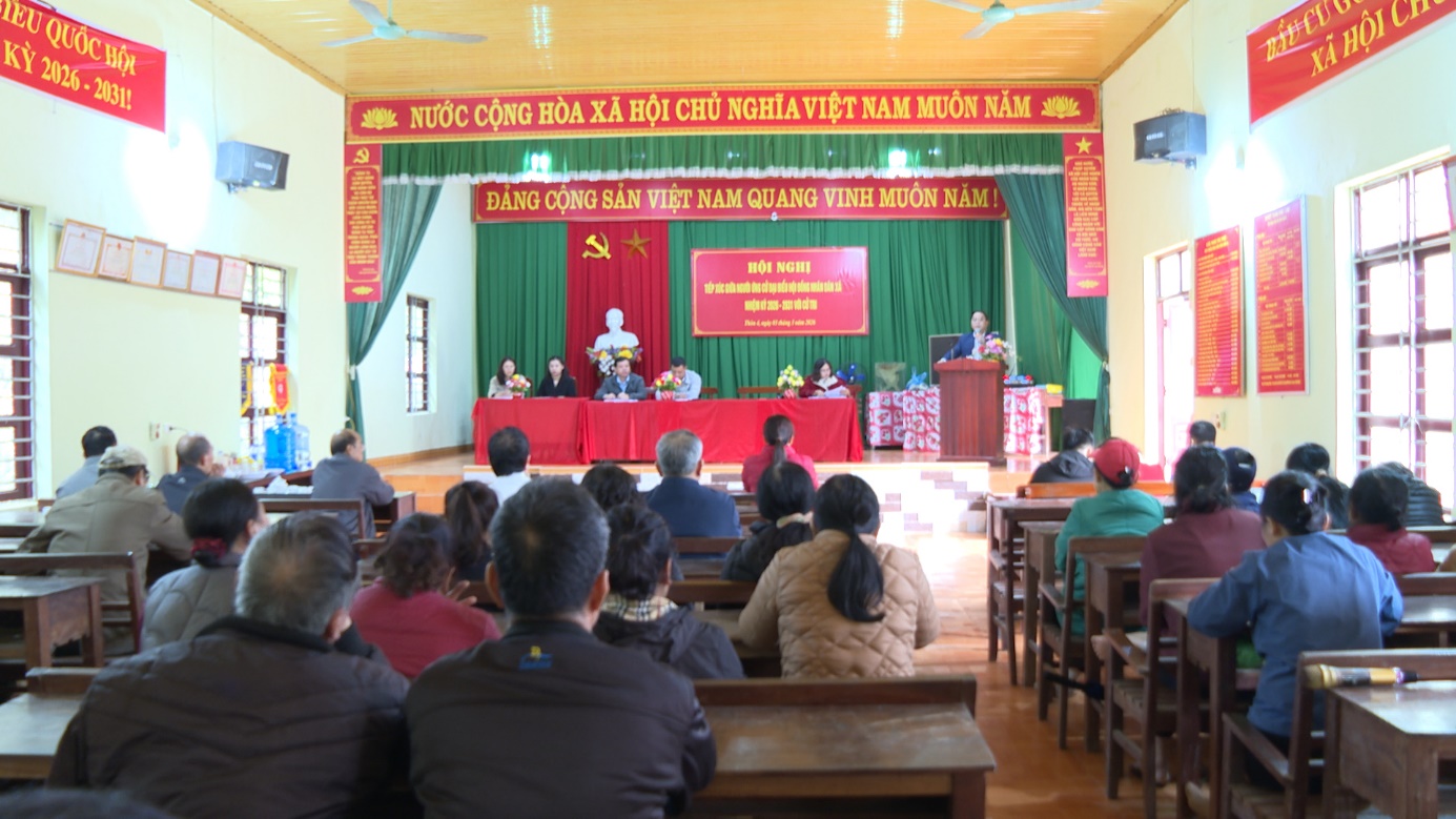Tại hội nghị, đại diện Ban Thường trực Ủy ban MTTQ Việt Nam xã đã thông tin đến cử tri về căn cứ pháp lý, quy trình hiệp thương và danh sách chính thức những người ứng cử theo đúng quy định của Luật Bầu cử đại biểu Quốc hội và đại biểu HĐND. Đồng thời, giới thiệu công khai, minh bạch tiểu sử tóm tắt của từng ứng cử viên để cử tri theo dõi, nắm bắt.