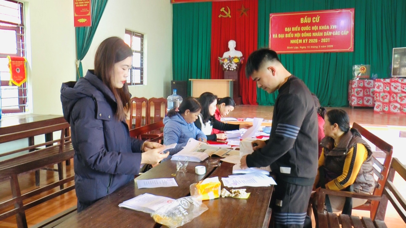 Không khí chuẩn bị cho ngày bầu cử tại xã Đình Lập diễn ra khẩn trương, nghiêm túc. Toàn xã có 26 khu vực bỏ phiếu tại 26 thôn với hơn 7.200 cử tri tham gia bỏ phiếu. Đến thời điểm này, công tác chuẩn bị đã được triển khai tích cực, đồng bộ, bảo đảm đúng tiến độ và quy định của pháp luật. Tại các điểm bỏ phiếu như nhà văn hóa thôn 3 và nhà văn hoá thôn 7 việc trang trí khánh tiết được thực hiện trang trọng; danh sách cử tri, danh sách ứng cử viên được niêm yết đầy đủ, công khai. Cùng với đó, bàn hướng dẫn, bàn phát phiếu bầu, khu vực viết phiếu, hòm phiếu và bàn đóng dấu “đã bỏ phiếu” được bố trí hợp lý, tạo thuận lợi cho cử tri thực hiện quyền và nghĩa vụ công dân.