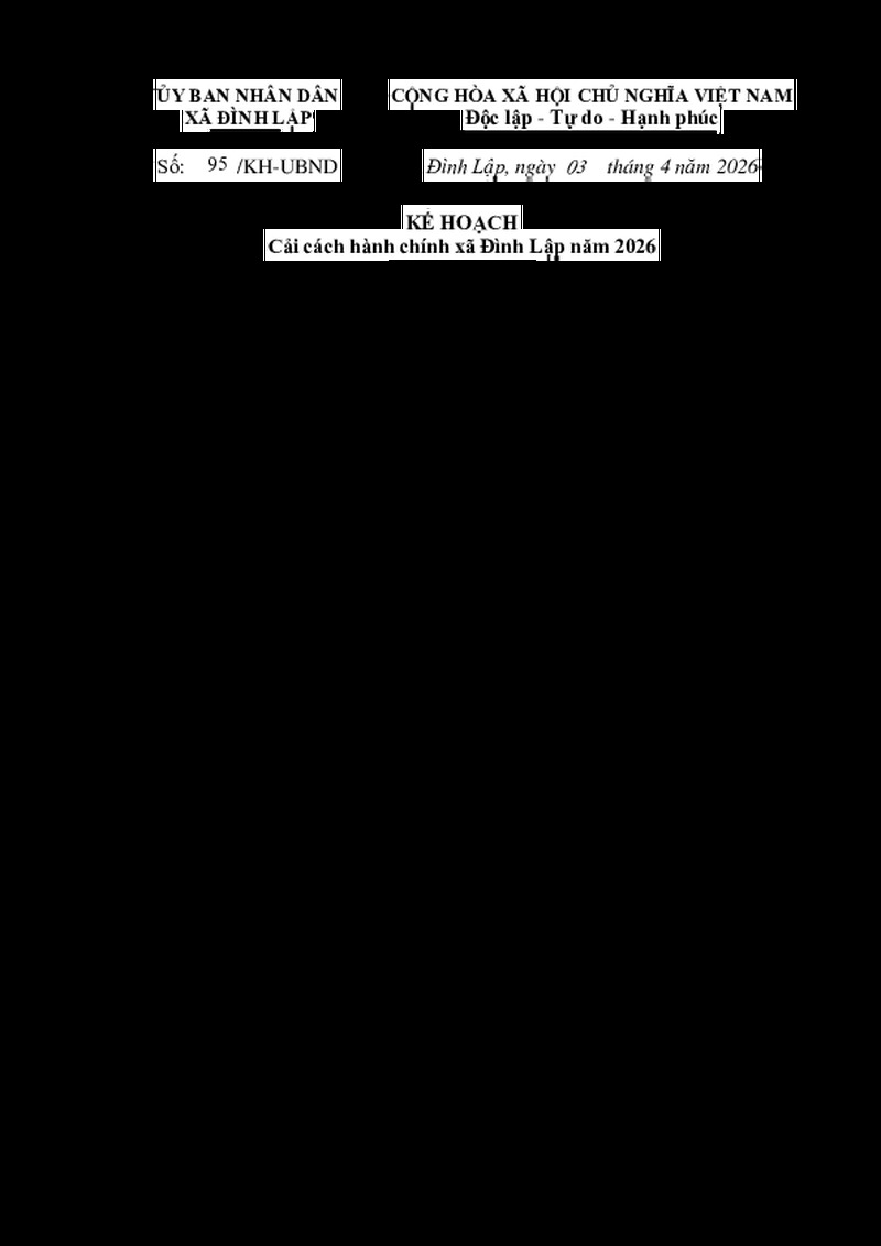 | Tiêu đề văn bản | KẾ HOẠCH Cải cách hành chính xã Đình Lập năm 2026 | ||