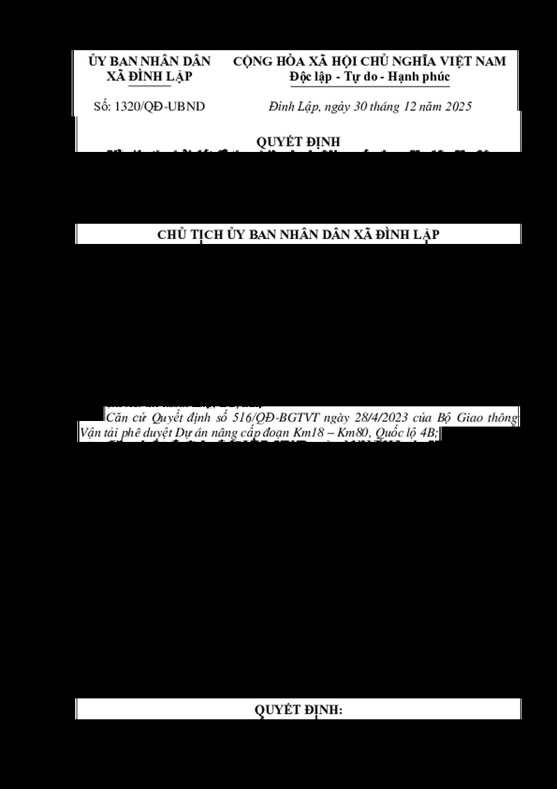 | File đính kèm | QUYẾT ĐỊNH Về việc thu hồi đất để xây dựng công trình giao thông Dự án Nâng cấp đoạn Km18 - Km80 Quốc lộ 4B, tỉnh Lạng Sơn Hoàng Văn Liêm | ||