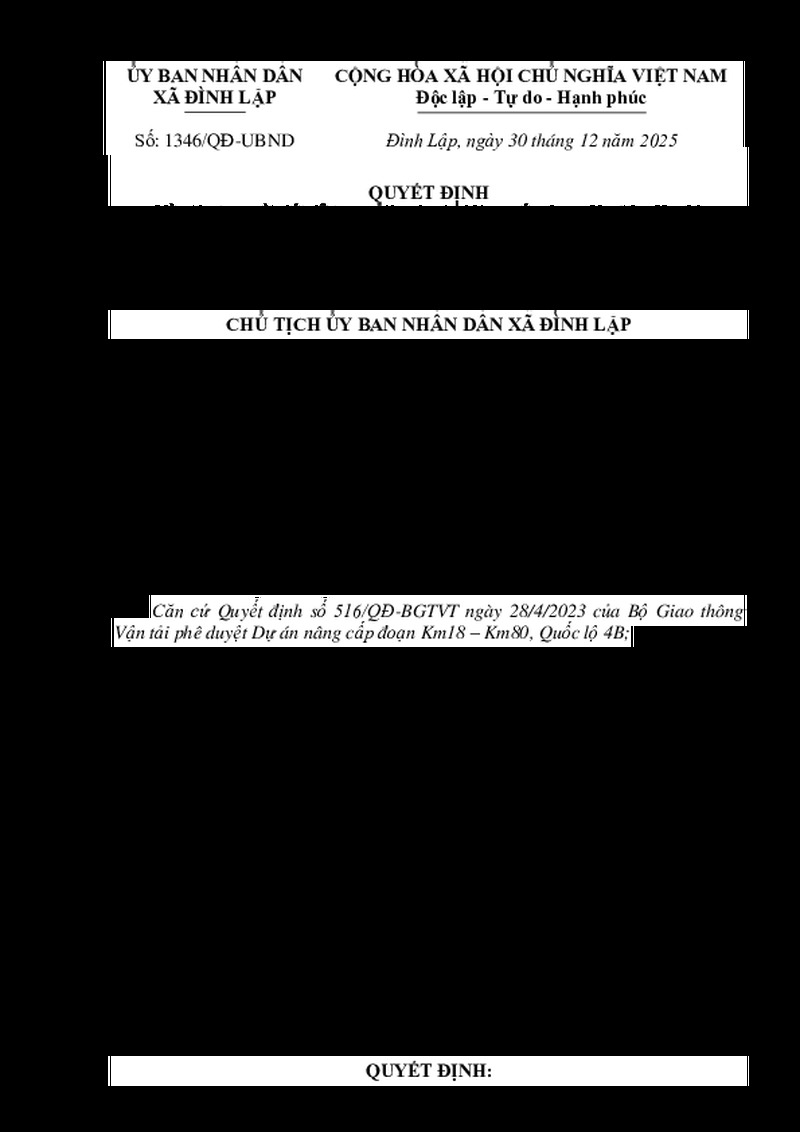 | File đính kèm | QUYẾT ĐỊNH Về việc thu hồi đất để xây dựng công trình giao thông Dự án Nâng cấp đoạn Km18 - Km80 Quốc lộ 4B, tỉnh Lạng Sơn Chu văn Thắng | ||