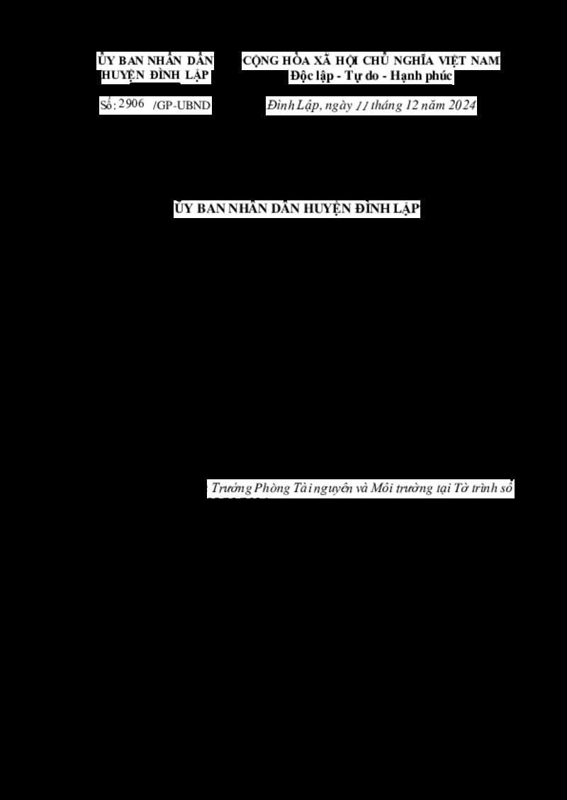| Số hiệu | 2906/GP-UBND | Cơ quan ban hành | UBND HUYỆN ĐÌNH LẬP |