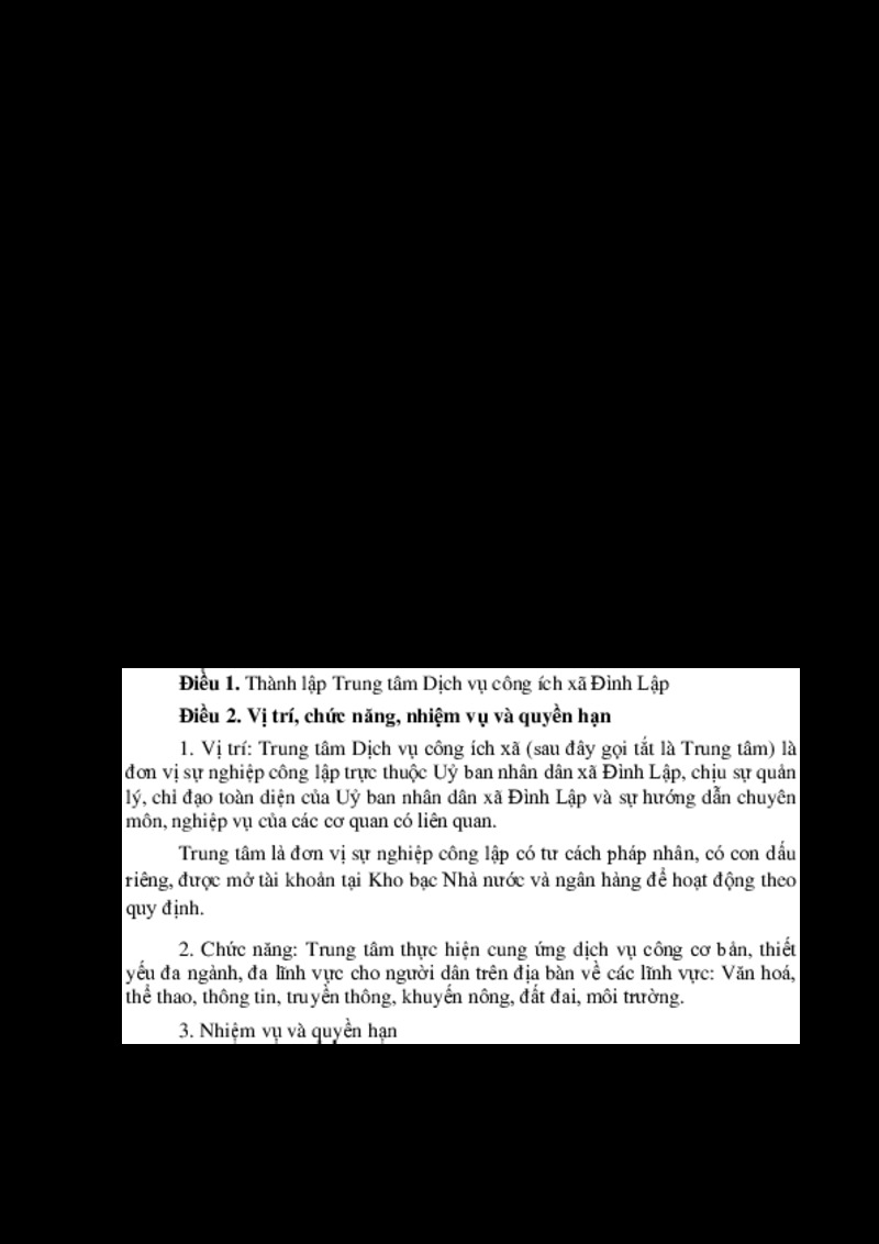 | Tiêu đề văn bản | Quyết định thành lập Trung tâm Dịch vụ công ích xã Đình Lập | ||
