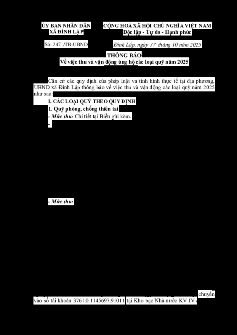 Tiêu đề văn bản | Thông báo về việc thu và vận động ủng hộ các loại quỹ năm 2025 | ||
