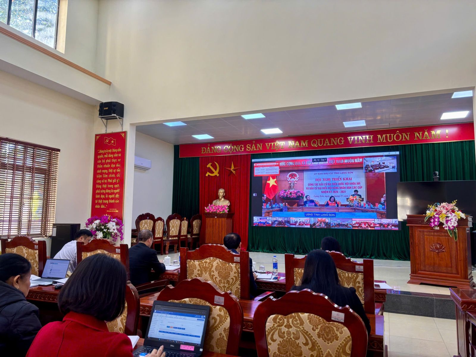 Thực hiện Kế hoạch số 03/KH-UBBC ngày 20/11/2025 của Ủy ban bầu cử tỉnh về việc tổ chức Hội nghị triển khai công tác bầu cử đại biểu Quốc hội khóa XVI và đại biểu Hội đồng nhân dân các cấp tỉnh Lạng Sơn nhiệm kỳ 2026 - 2031, chiều ngày 24/11/2025, Ủy ban bầu cử tỉnh Lạng Sơn tổ chức tham dự Hội nghị trực tuyến triển khai công tác bầu cử đại biểu Quốc hội khóa XVI và đại biểu Hội đồng nhân dân các cấp nhiệm kỳ 2026-2031.