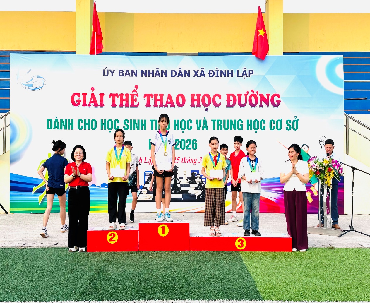 Ngày 04/04/2026, UBND xã Đình Lập tổ chức Bế mạc Giải thể thao học đường dành cho học sinh Tiểu học và Trung học cơ sở các trường trực thuộc xã năm 2026. Dự lễ bế mạc có đồng chí Mã Thu Hồng, Phó Bí thư thường trực Đảng uỷ xã; đồng chí Bế Thị Trang, Phó Chủ tịch UBND xã cùng lãnh đạo các cơ quan, đơn vị, trường học cùng toàn thể trọng tài, vận động viên tham gia giải đấu.