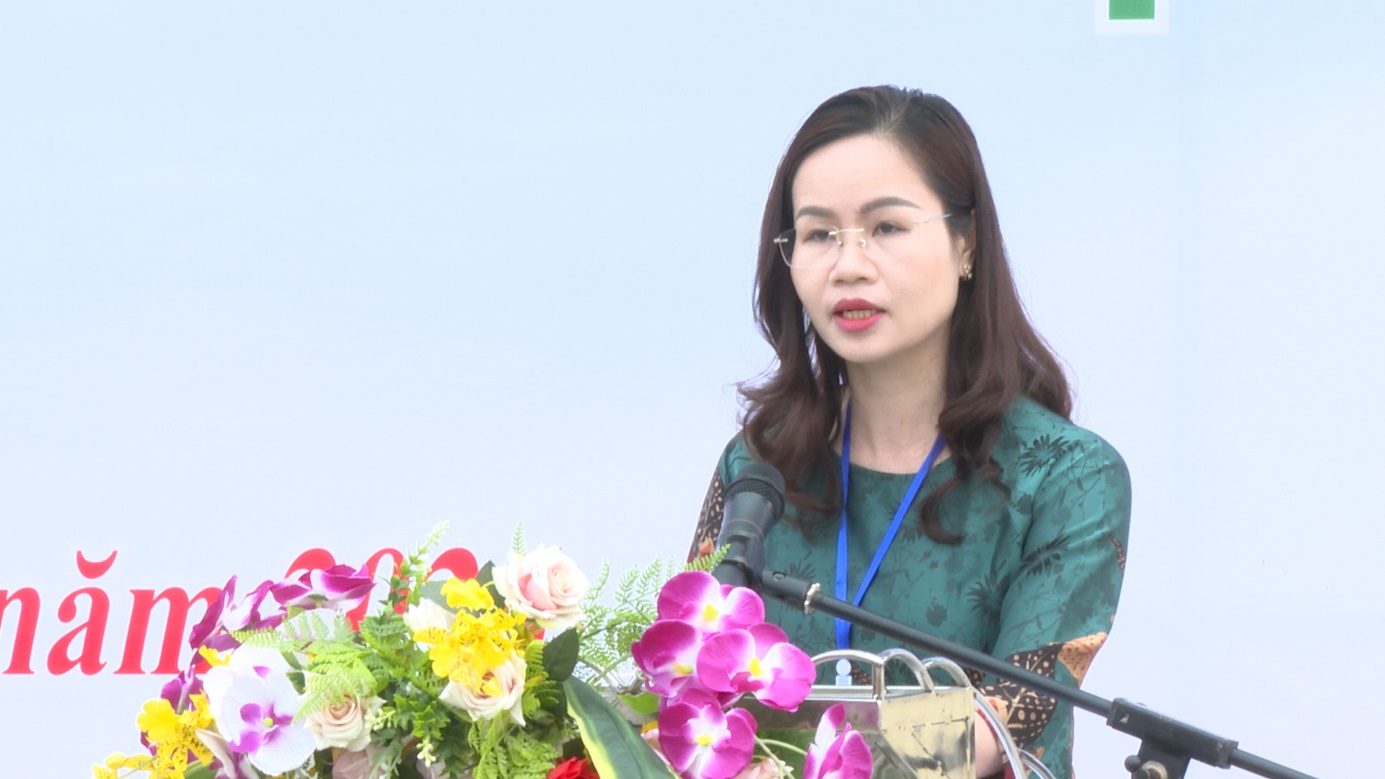 Đồng chí Bế Thị Trang, Phó Chủ tịch UBND xã phát biểu khai mạc