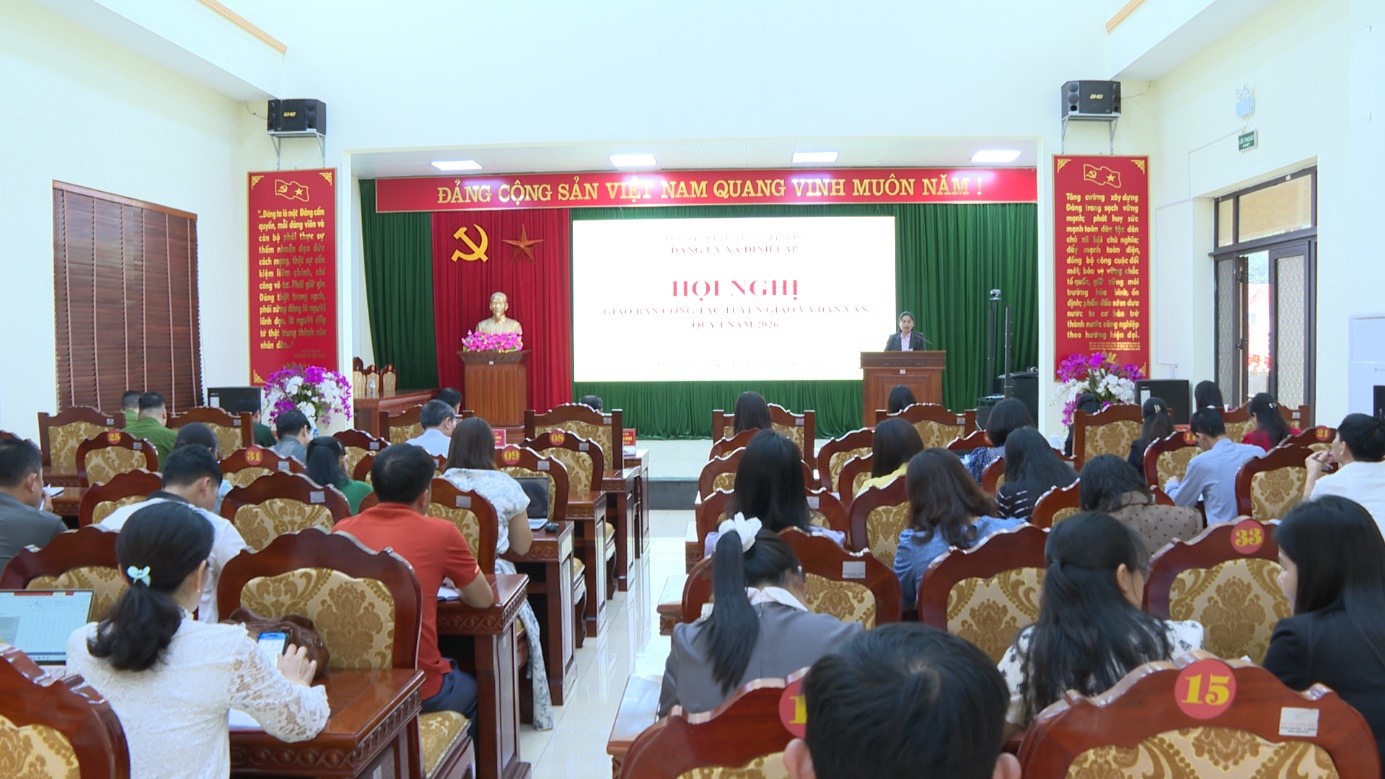 Ngày 03/4/2026, Đảng ủy xã Đình Lập tổ chức Hội nghị giao ban công tác Tuyên giáo và Dân vận quý I năm 2026. Đồng chí Liễu Anh Minh, Bí thư Đảng ủy, Chủ tịch HĐND xã dự và chỉ đạo hội nghị. Dự hội nghị có lãnh đạo Thường trực Đảng uỷ, HĐND, UBND, Uỷ ban MTTQ xã; lãnh đạo các cơ quan, đơn vị trên địa bàn xã; Bí thư các chi, đảng bộ trực thuộc.