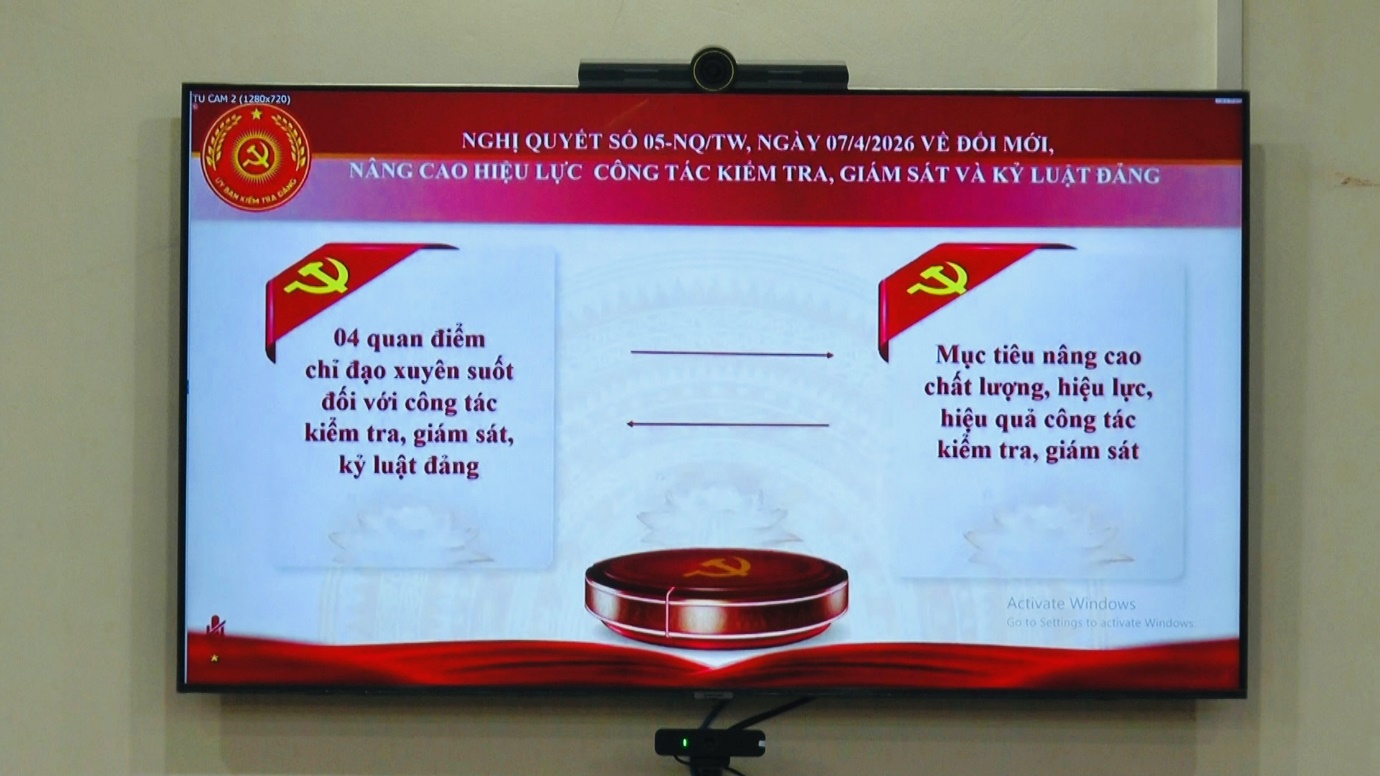 Hội nghị tập trung phổ biến, quán triệt và triển khai thực hiện các văn bản quan trọng về công tác kiểm tra, giám sát và kỷ luật của Đảng khóa XIV: Nghị quyết số 05-NQ/TW, ngày 07/4/2026 của Hội nghị lần thứ hai Ban Chấp hành Trung ương Đảng khóa XIV về đổi mới, nâng cao hiệu lực công tác kiểm tra, giám sát và kỷ luật Đảng; Quy định số 21-QĐ/TW, ngày 11/4/2026 của Ban Chấp hành Trung ương Đảng khóa XIV về công tác kiểm tra, giám sát và kỷ luật của Đảng; Chương trình hành động số 01-CTr/UBKTTW, ngày 10/02/2026 của ngành Kiểm tra Đảng về thực hiện Nghị quyết Đại hội đại biểu toàn quốc lần thứ XIV của Đảng.