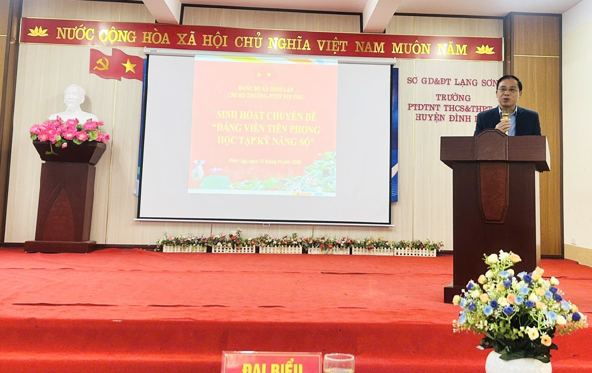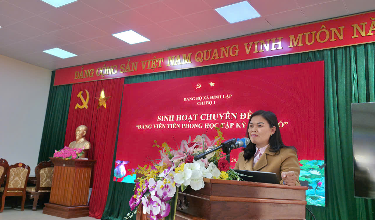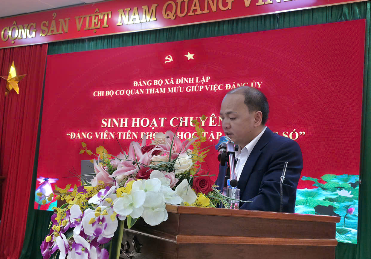Thực hiện Hướng dẫn số 05-HD/BTGDVTU, ngày 21/10/2025 của Ban Tuyên giáo và Dân vận Tỉnh uỷ về Hướng dẫn tổ chức sinh hoạt chuyên đề “Đảng viên tiên phong học tập kỹ năng số”. Ban Thường vụ Đảng uỷ xã Đình Lập đã chỉ đạo triển khai thực hiện sinh hoạt chuyên đề “Đảng viên tiên phong học tập kỹ năng số” đến toàn thể các chi bộ trực thuộc. Đảng uỷ xã đã lựa chọn 03 chi bộ theo các loại hình chi bộ để tổ chức thực hiện sinh hoạt chuyên đề điểm “Đảng viên tiên phong học tập kỹ năng số”, cụ thể: