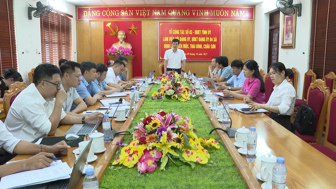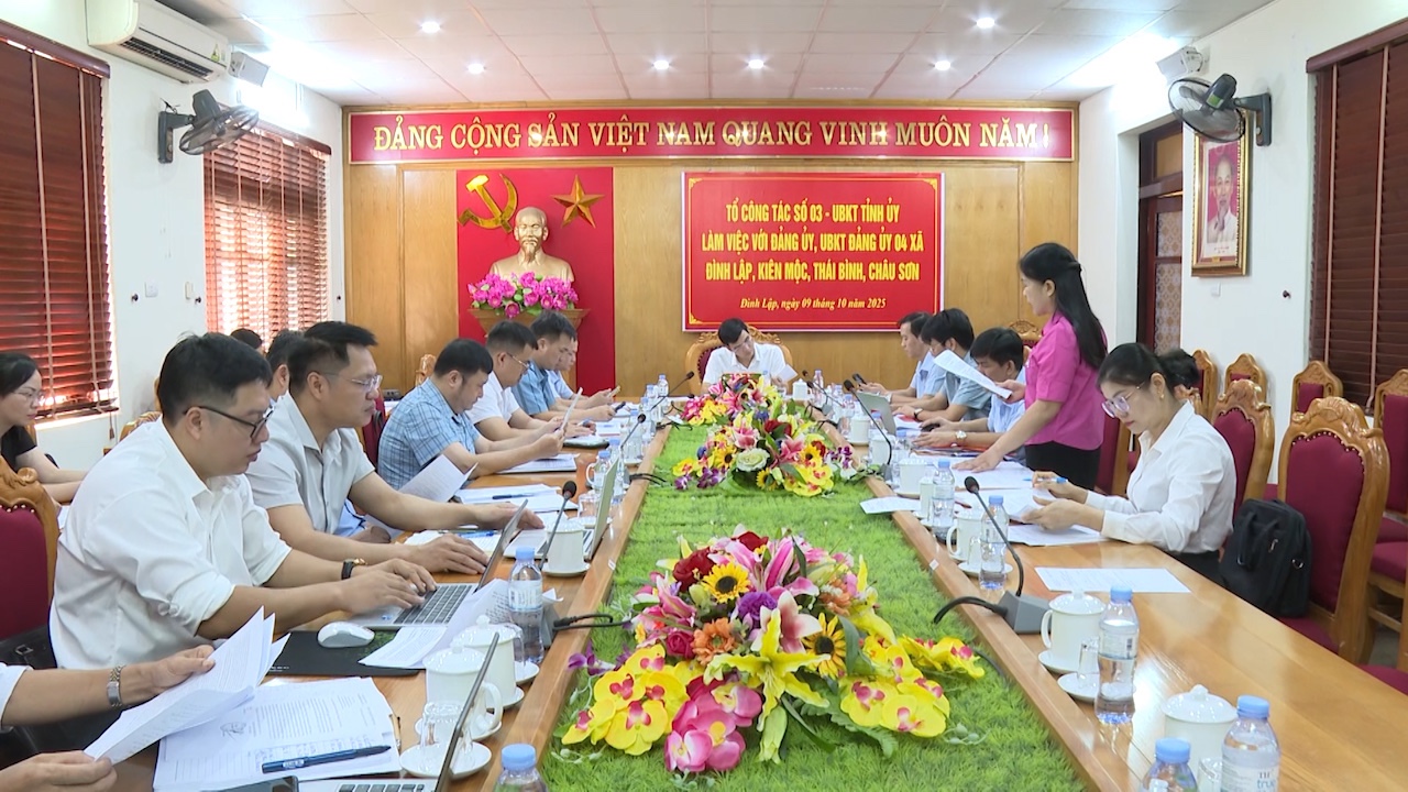 Ngày 10/9/2025, Đoàn công tác số 03 của Uỷ ban Kiểm tra Tỉnh uỷ do đồng chí Nguyễn Đức Thuận – Phó Chủ nhiệm Uỷ ban Kiểm tra Tỉnh uỷ làm trưởng đoàn đã có buổi làm việc với Đảng uỷ 04 xã Đình Lập, Kiên Mộc, Thái Bình, Châu Sơn về công tác kiểm tra, giám sát và kỷ luật Đảng.