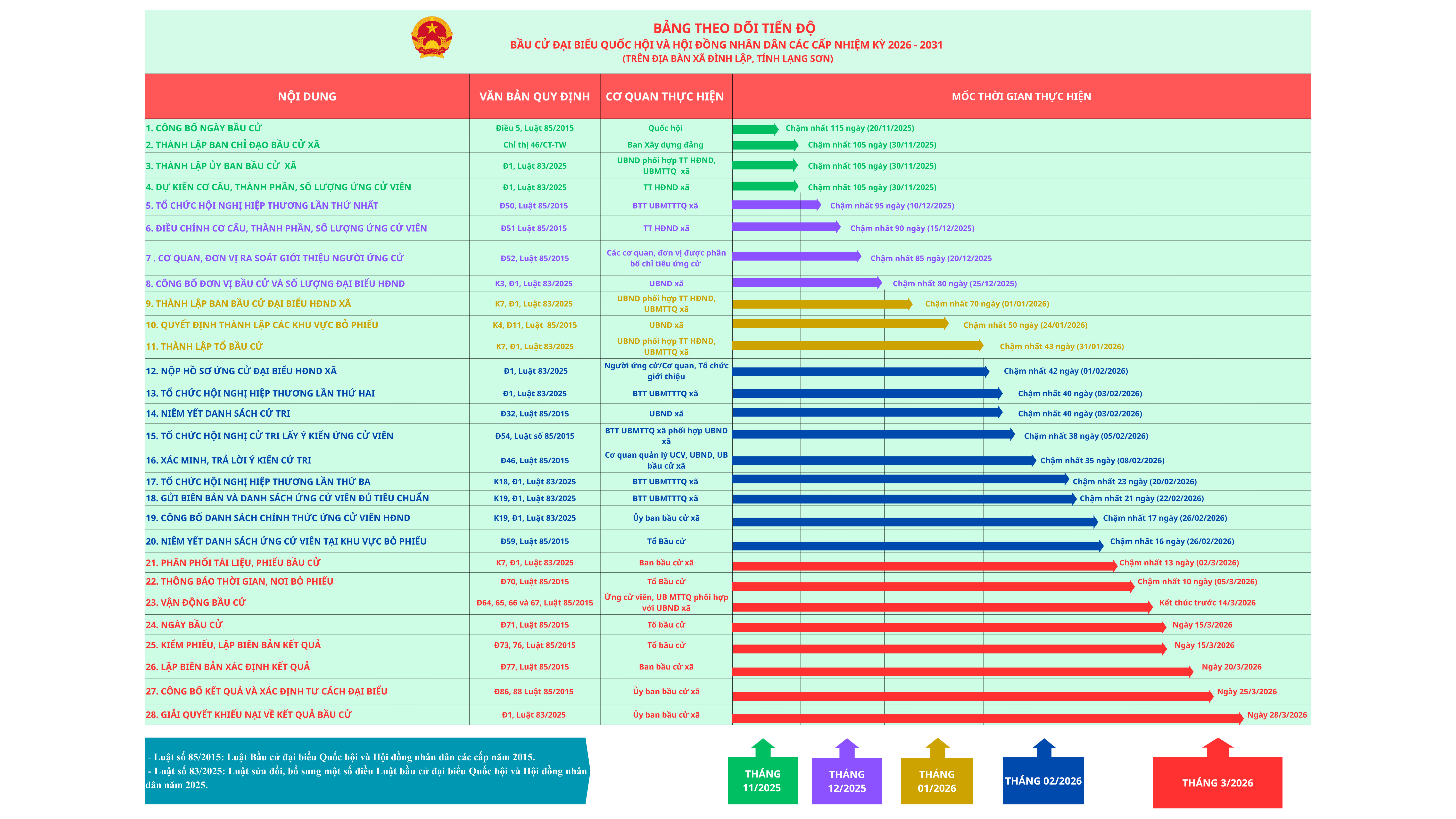 Bảng theo dõi tiến độ Bầu cử Quốc hội và HĐND các cấp nhiệm kỳ 2026 – 2030 (trên địa bàn xã Đình Lập)