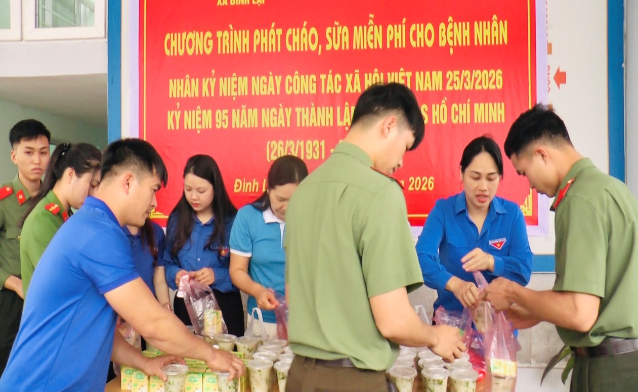 Thiết thực chào mừng kỷ niệm 95 năm Ngày thành lập Đoàn TNCS Hồ Chí Minh 26/3/1931 – 26/3/2026. Ngày 25/03/2026, Uỷ ban MTTQ và các tổ chức chính trị xã hội xã Đình Lập phối hợp với Trung tâm Y tế khu vực Đình Lập tổ chức Chương trình phát cháo miễn phí cho các bệnh nhân đang điều trị tại Trung tâm y tế khu vực Đình Lập.