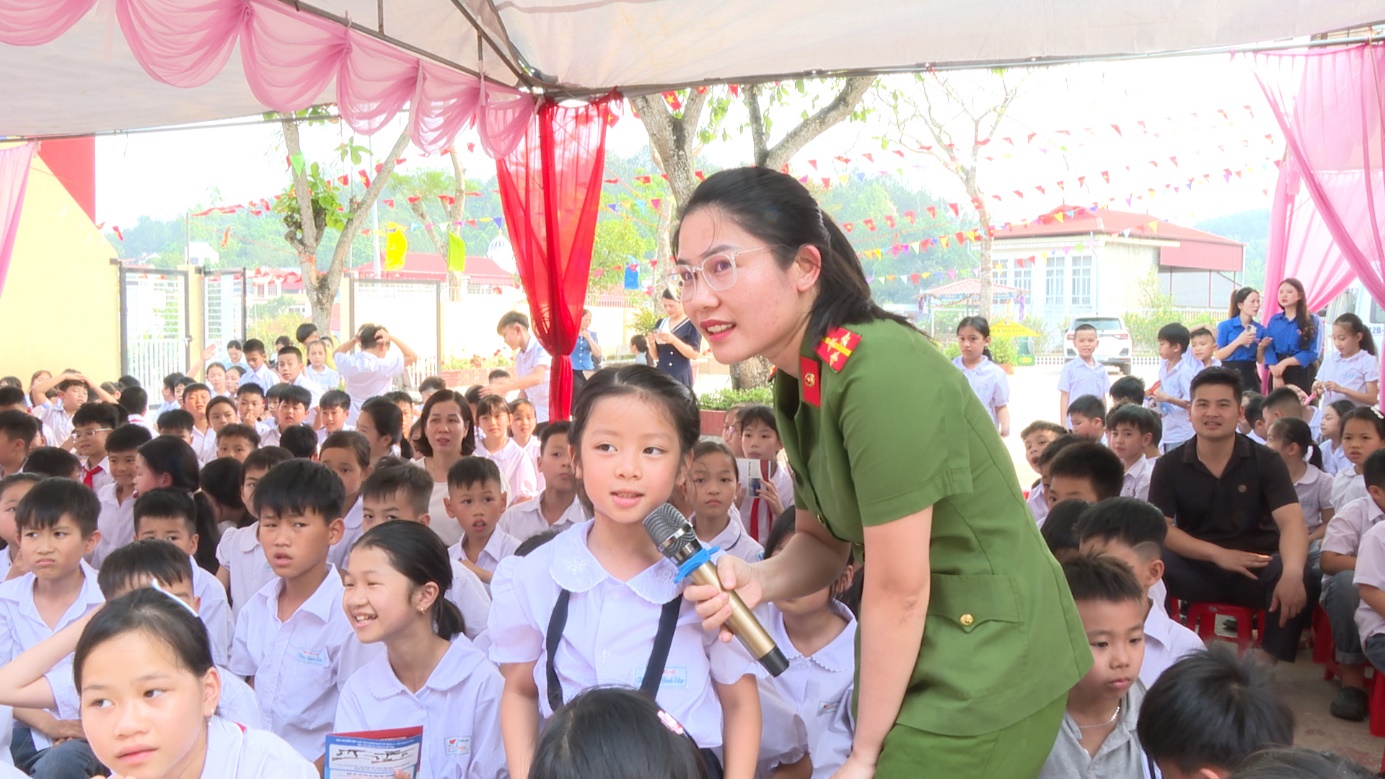 Tại chương trình, các em học sinh đã được nghe cán bộ Phòng Cảnh sát QLHC về TTXH - Công an tỉnh và Công an xã tuyên truyền các nội dung về phòng, chống pháo nổ, công tác phòng ngừa các hành vi vi phạm liên quan đến vũ khí, vật liệu nổ, công cụ hỗ trợ; phổ biến pháp luật về trật tự an toàn giao thông và hướng dẫn kỹ năng tham gia giao thông an toàn phù hợp với lứa tuổi học sinh. Bên cạnh đó, các em còn được tham gia trò chơi hỏi – đáp, trả lời các câu hỏi liên quan đến nội dung pháp luật đã được tuyên truyền, tạo không khí sôi nổi, giúp các em dễ hiểu, dễ nhớ và nâng cao ý thức chấp hành pháp luật ngay từ khi còn ngồi trên ghế nhà trường.