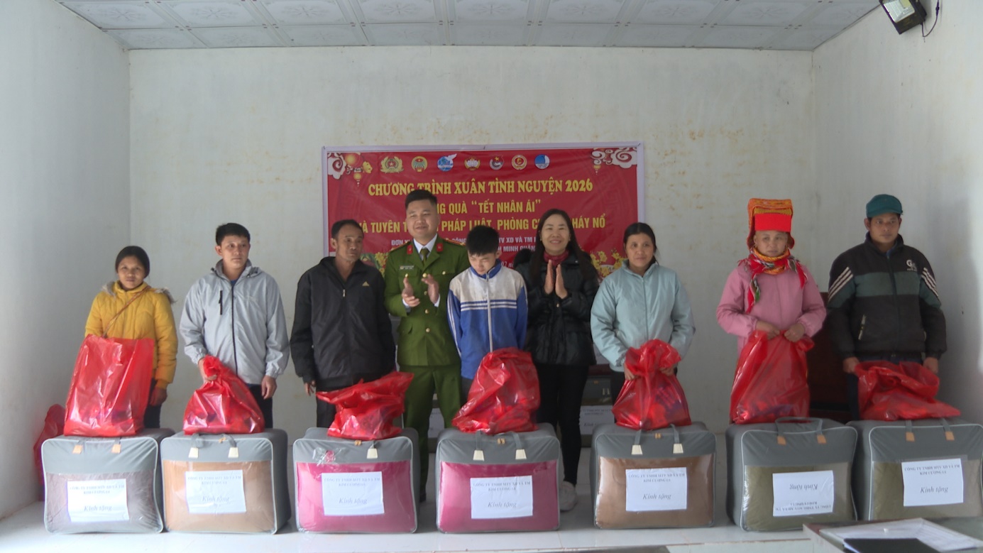 Chương trình “Xuân tình nguyện 2026 – Tặng quà Tết nhân ái và tuyên truyền pháp luật phòng, chống cháy nổ” là hoạt động ý nghĩa, thể hiện tinh thần trách nhiệm với cộng đồng của các cơ quan, đơn vị, doanh nghiệp đồng hành, đồng thời góp phần nâng cao nhận thức pháp luật cho người dân, bảo đảm an ninh, trật tự trên địa bàn./.