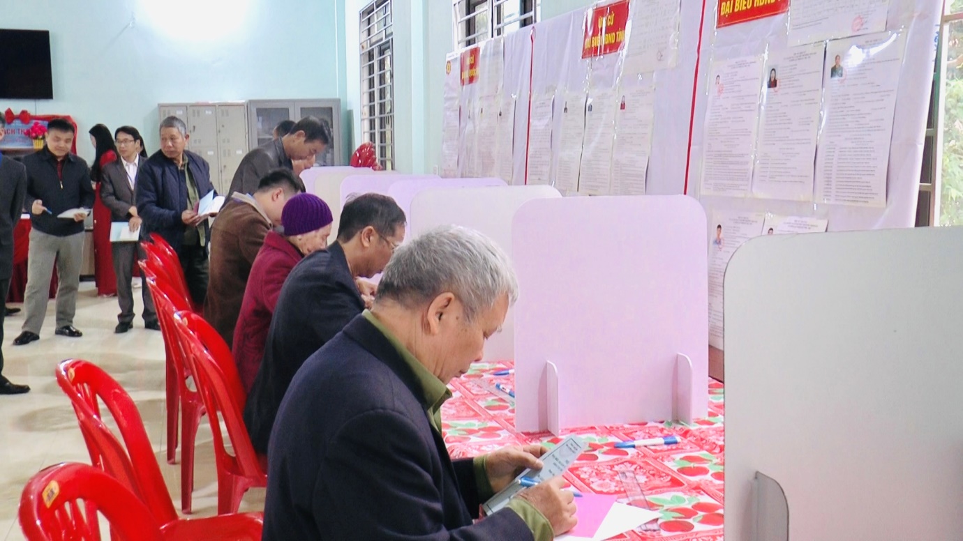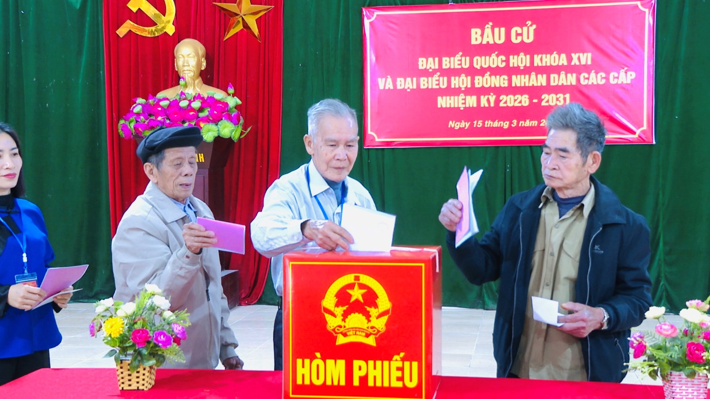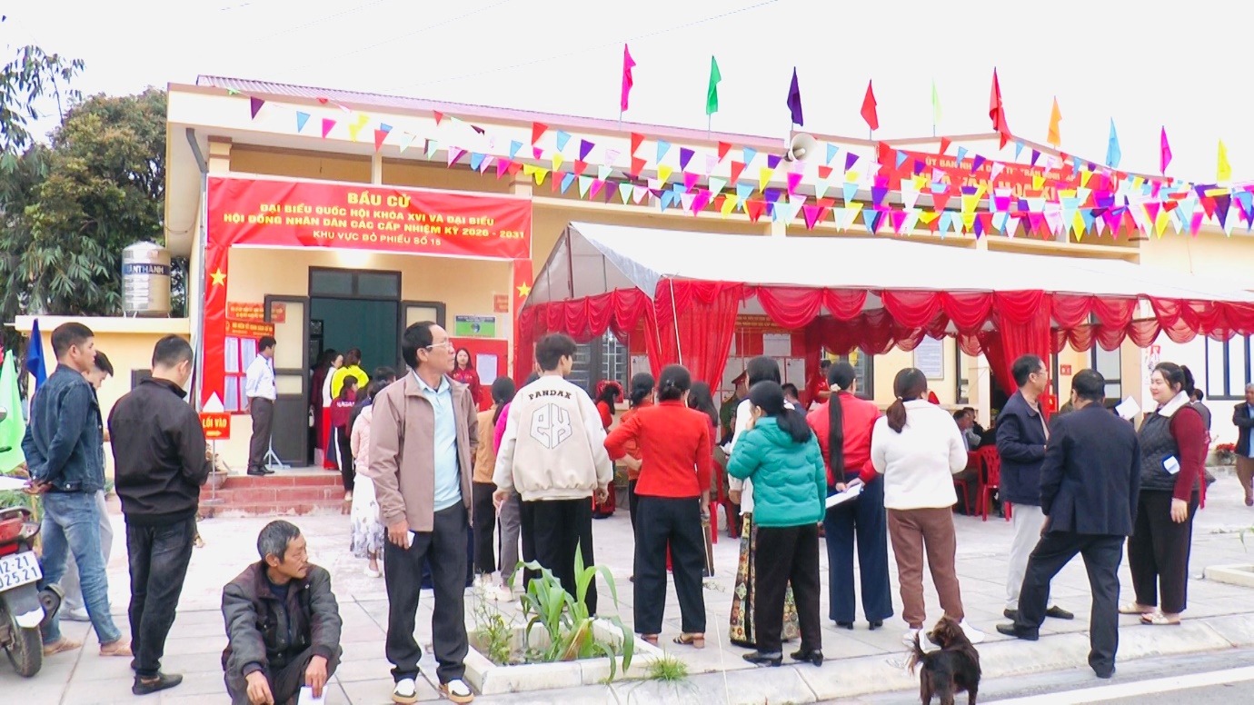 Các khu vực bỏ phiếu được trang trí khánh tiết trang trọng, hệ thống pano, khẩu hiệu tuyên truyền được bố trí nổi bật, tạo nên không khí rộn ràng, thiêng liêng của ngày hội non sông. Lực lượng phục vụ bầu cử, lực lượng an ninh và các thành viên tổ bầu cử có mặt từ sớm để chuẩn bị các điều kiện cần thiết, bảo đảm việc tổ chức bầu cử diễn ra đúng quy định, an toàn và thuận lợi. Ngay từ sáng sớm, dù tiết trời còn se lạnh, không khí tại các điểm bỏ phiếu đã trở nên rộn ràng và ấm áp. Nhiều cử tri cao tuổi, cử tri lần đầu tham gia bầu cử đều thể hiện sự phấn khởi và trách nhiệm khi cầm trên tay lá phiếu của mình, thể hiện quyền làm chủ và nghĩa vụ công dân đối với đất nước.