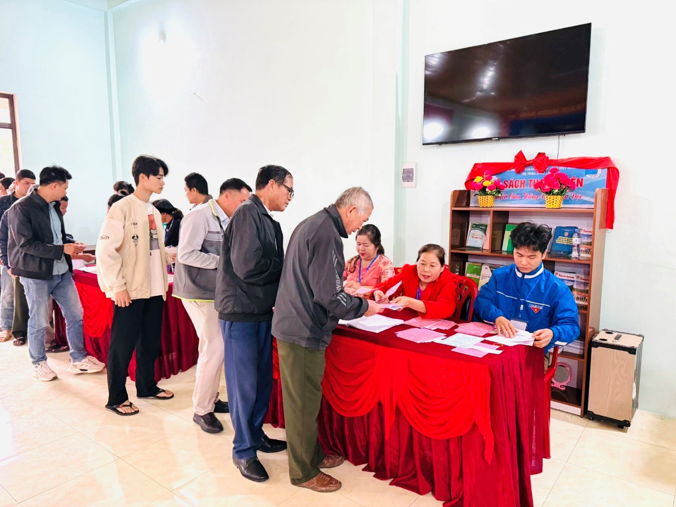 Tổ bầu cử kiểm tra thẻ cử tri và phát phiếu bầu cử