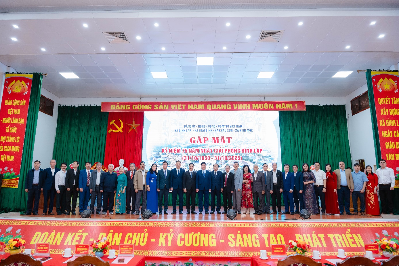 Ngày 25/10/2025, tại Hội trường UBND xã Đình Lập, Đảng uỷ - HĐND - UBND - UB MTTQ Việt Nam xã Đình Lập, xã Thái Bình, xã Châu Sơn, xã Kiên Mộc long trọng tổ chức Chương trình gặp mặt kỷ niệm 75 năm Ngày Giải phóng Đình Lập (31/10/1950 - 31/10/2025).