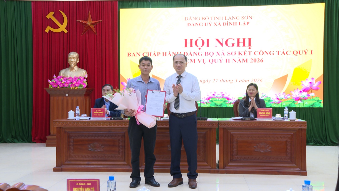Ngày 27/3/2026, Ban chấp hành Đảng bộ xã Đình Lập tổ chức hội nghị sơ kết công tác quý I và triển khai nhiệm vụ trọng tâm quý II năm 2026. Dự hội nghị có đồng chí Liễu Anh Minh, Bí thư Đảng ủy, Chủ tịch HĐND xã; đồng chí Mã Thu Hồng, Phó Bí thư Thường trực Đảng ủy; đồng chí Nguyễn Chiến Hiệp, Phó Bí thư Đảng ủy, Chủ tịch UBND xã; các đồng chí trong BTV Đảng ủy, Ủy viên Ban chấp hành Đảng bộ xã.