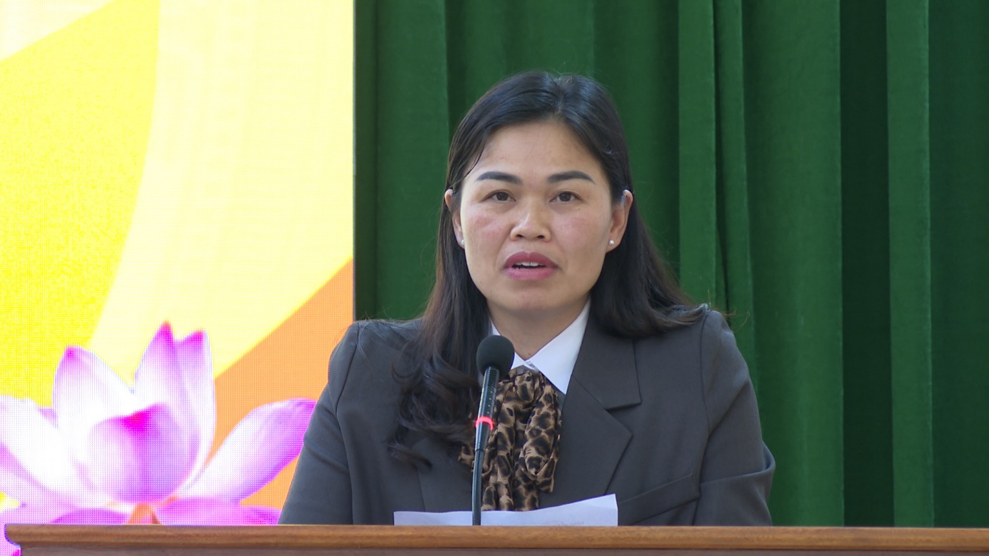 Đồng chí Mã Thu Hồng, Phó Bí thư TT Đảng ủy xã quán triệt một số văn bản tại hội nghị