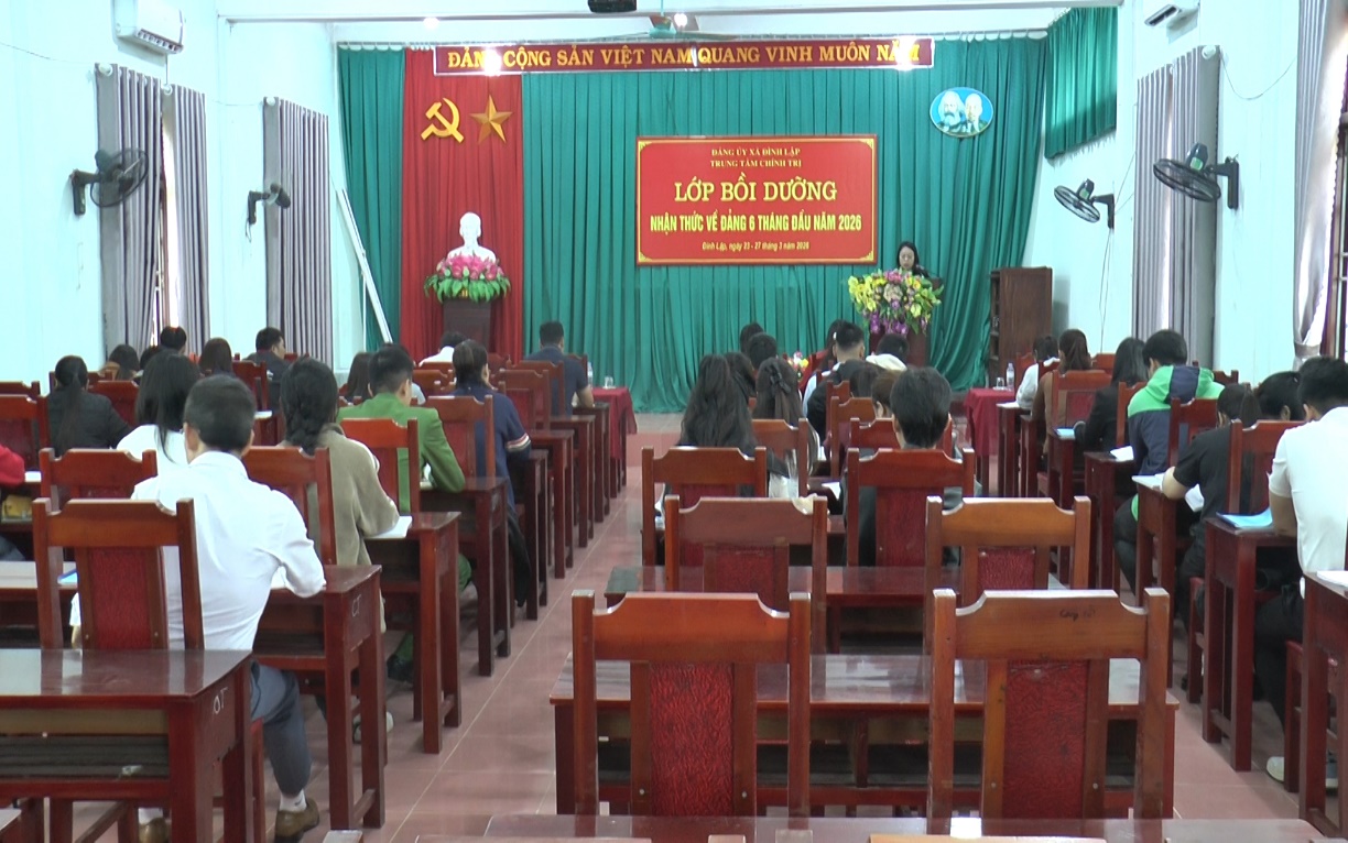 Ngày 23/03/2026, Trung tâm chính trị xã Đình Lập Trung tâm Chính trị xã Đình Lập tổ chức Khai giảng lớp Bồi dưỡng nhận thức về Đảng 6 tháng đầu năm 2026 cho 50 quần chúng ưu tú đến từ các đảng bộ, chi bộ trực thuộc Đảng ủy các xã: Đình Lập, Châu Sơn, Thái Bình và xã Kiên Mộc.