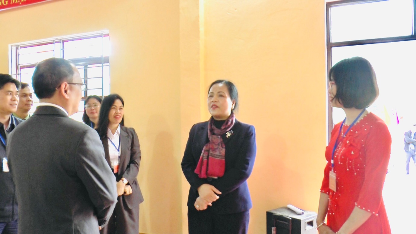 Lãnh đạo Ban tổ chức Tỉnh uỷ kiểm tra các khu vực bỏ phiếu trên địa bàn xã