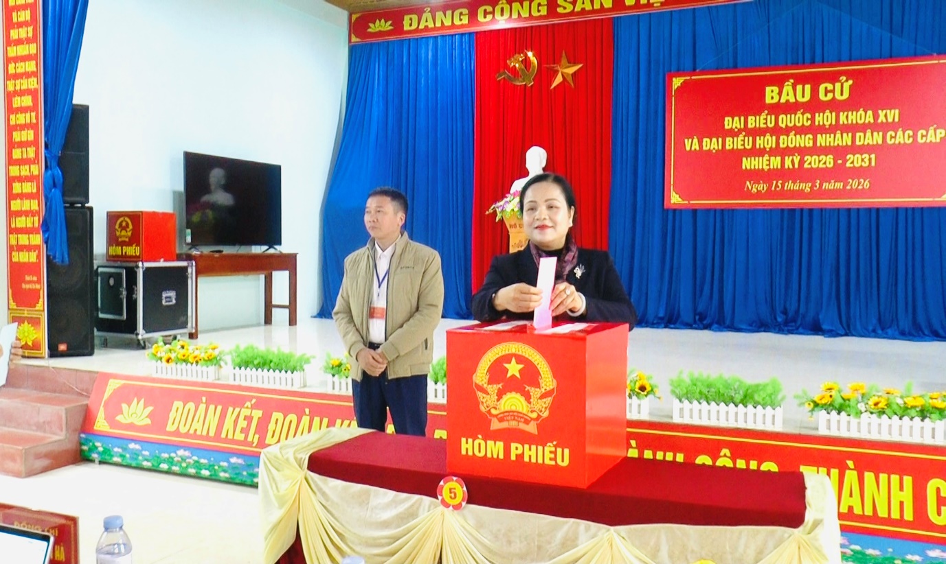 Trong không khí trang nghiêm, phấn khởi của ngày hội toàn dân, đồng chí Giáp Thị Bắc, Ủy viên Ban Thường vụ Tỉnh ủy, Trưởng Ban Tổ chức Tỉnh ủy đã thực hiện bỏ lá phiếu đầu tiên, mở đầu cho hoạt động bỏ phiếu của cử tri tại khu vực bầu cử. Việc bỏ phiếu được tiến hành nghiêm túc, đúng quy định, bảo đảm nguyên tắc dân chủ, bình đẳng, trực tiếp và bỏ phiếu kín, thể hiện trách nhiệm và ý thức chính trị của cán bộ, đảng viên và các tầng lớp nhân dân đối với sự kiện chính trị quan trọng của đất nước. Góp phần lựa chọn những đại biểu tiêu biểu tham gia Quốc hội khoá XVI và HĐND các cấp nhiệm kỳ 2026 - 2031.