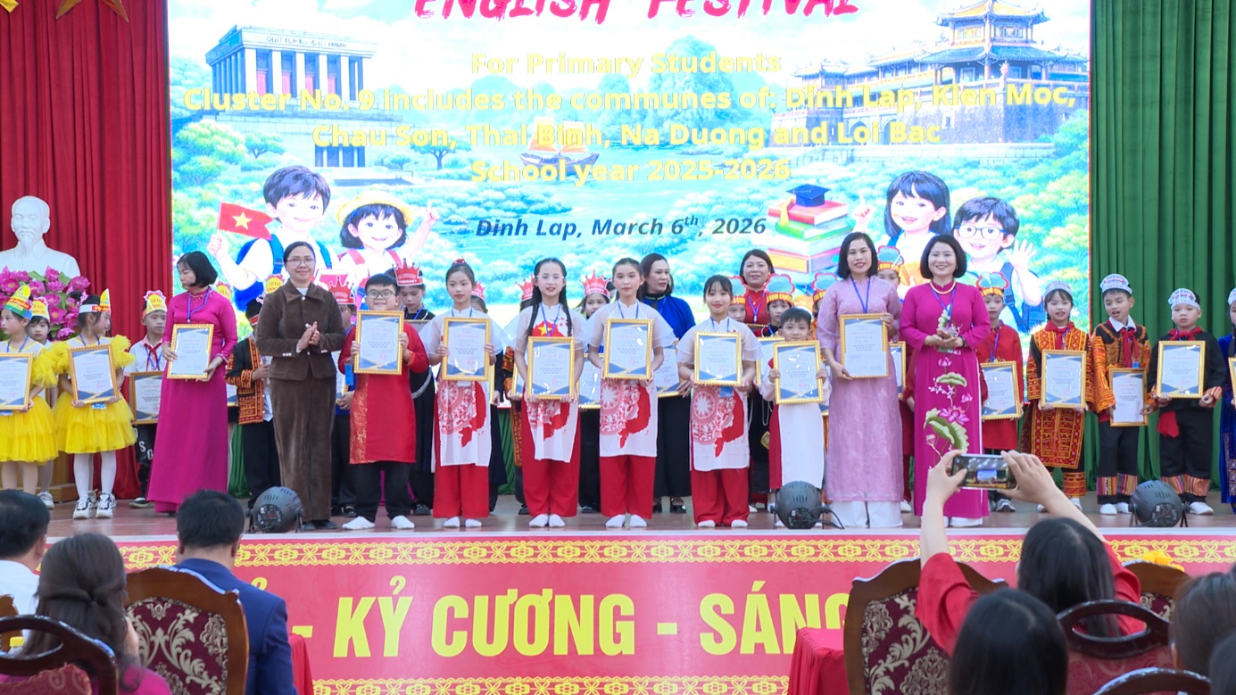 Ngày 06/3/2026, Tại Hội trường UBND xã Đình Lập diễn ra Ngày hội giao lưu Tiếng Anh cấp Tiểu học cụm số 9 gồm các xã: Đình Lập, Kiên Mộc, Châu Sơn, Thái Bình, Na Dương, Lợi Bác, năm học 2025 - 2026.