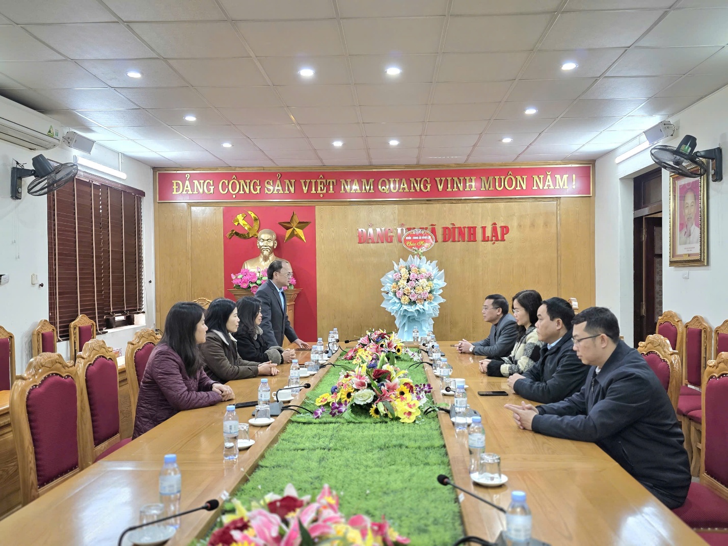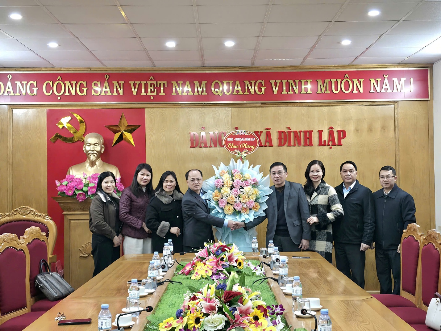 Đoàn công tác HĐND, UBND xã Đình Lập đại diện đến chúc mừng do đồng chí Nguyễn Chiến Hiệp – Phó Bí thư Đảng ủy, Chủ tịch UBND xã làm trưởng đoàn, cùng đồng chí Sầm Anh Dũng – Phó Chủ tịch HĐND xã và các đồng chí trong đoàn đã gửi lời chúc mừng tốt đẹp nhất tới tập thể Thường trực, Ban Thường vụ, Ban Chấp hành Đảng bộ xã; đồng thời bày tỏ sự tin tưởng, đồng hành trong công tác lãnh đạo, chỉ đạo thực hiện nhiệm vụ chính trị của địa phương, quyết tâm xây dựng xã Đình Lập ngày càng phát triển vững mạnh.
