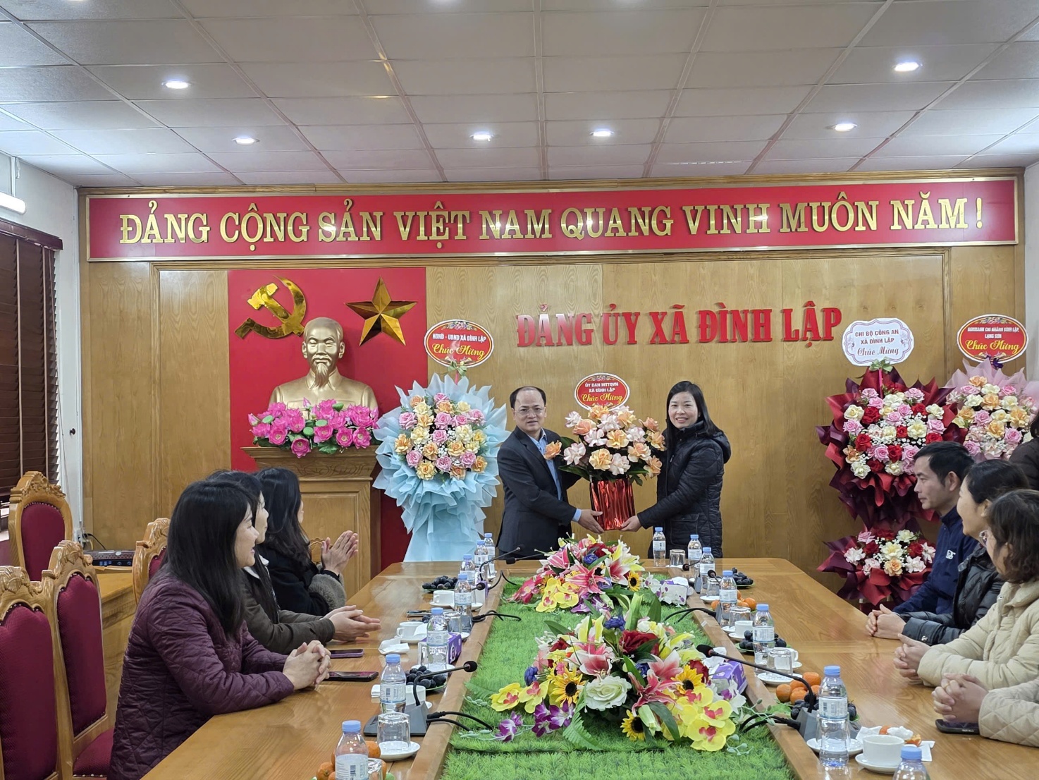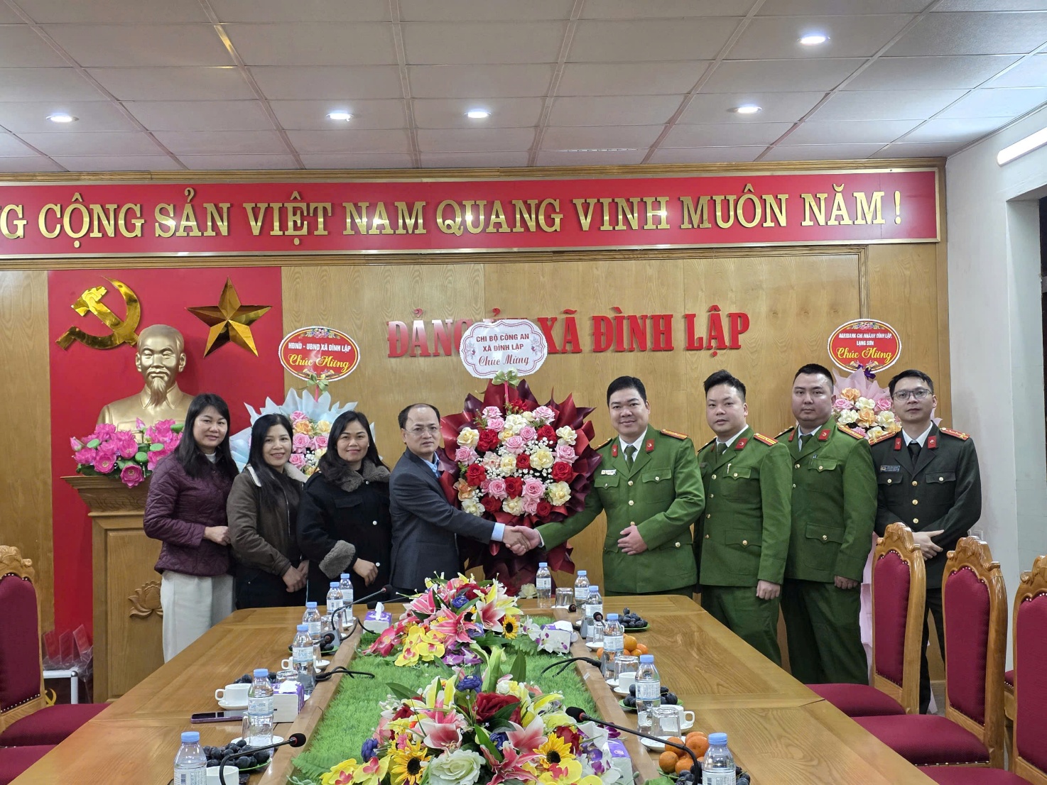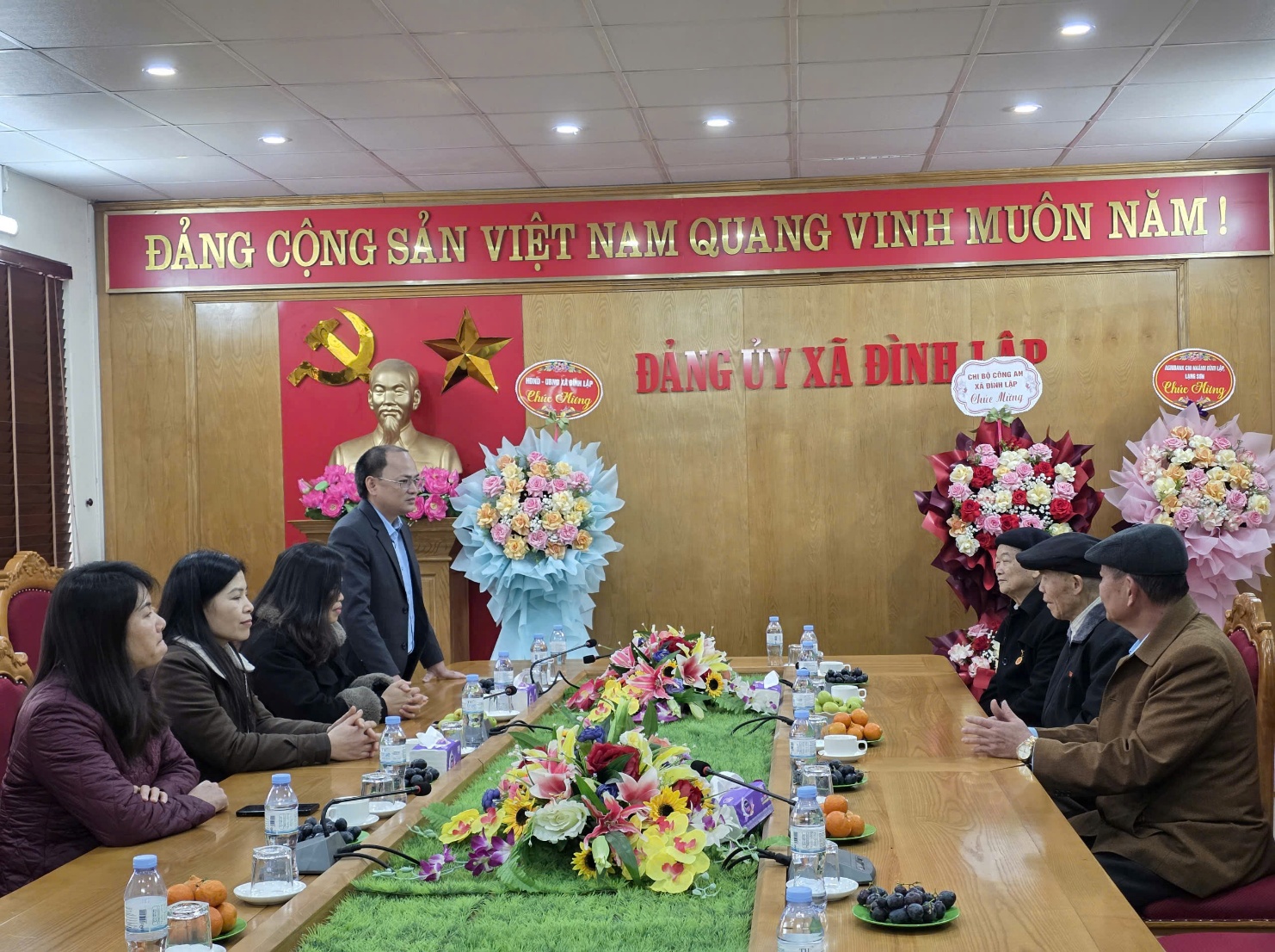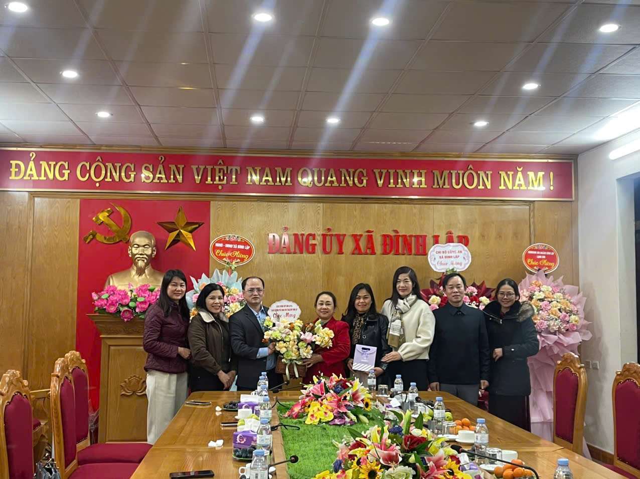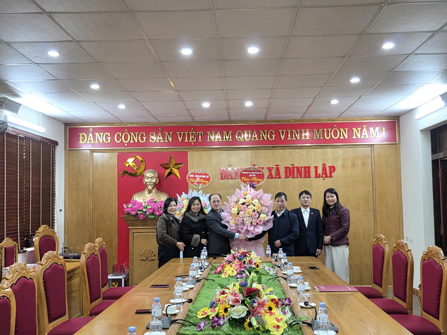 Cùng đến chúc mừng Đảng ủy xã còn có các đoàn: Công an xã Đình Lập, Cơ quan UBMTTQ Việt Nam xã, Ngân hàng Agribank chi nhánh Đình Lập, Lạng Sơn, các đơn vị trường học và một số cơ quan, đơn vị, tổ chức, trên địa bàn xã. Những lẵng hoa tươi thắm, những lời chúc chân tình thể hiện sự quan tâm, gắn bó, tinh thần phối hợp chặt chẽ, chung sức đồng lòng vì mục tiêu xây dựng hệ thống chính trị cơ sở vững mạnh, phục vụ Nhân dân ngày càng tốt hơn