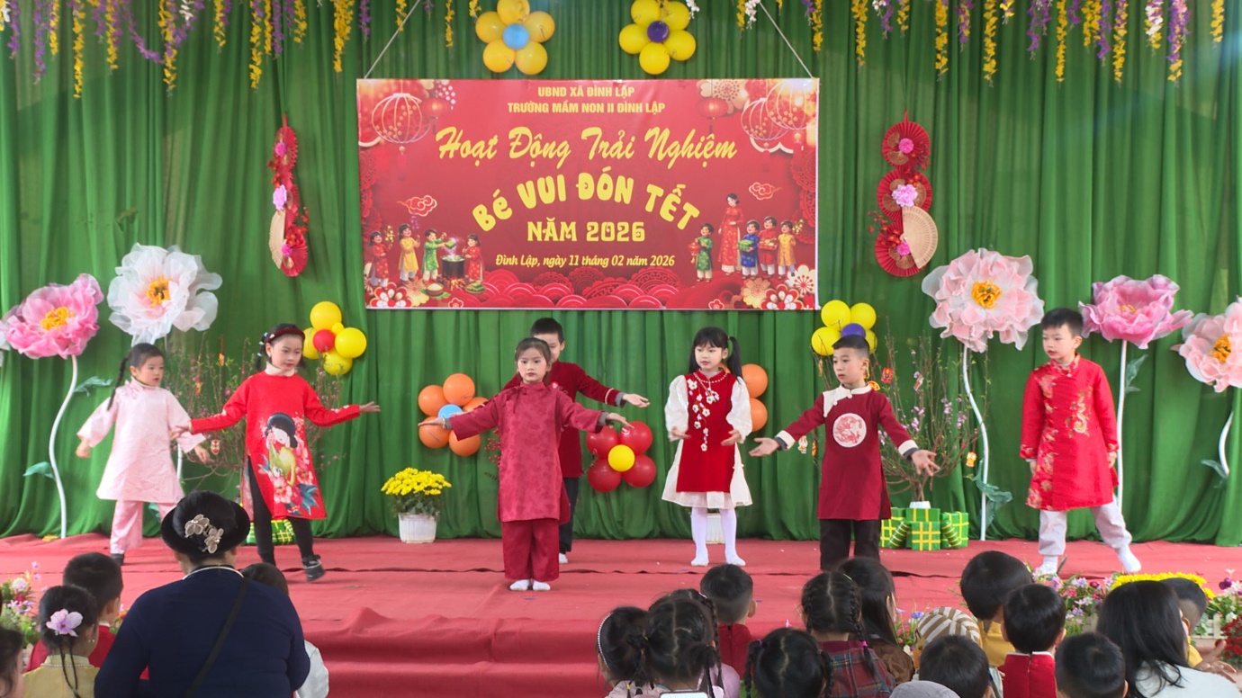 Nhằm tạo không khí vui tươi, giúp trẻ hiểu thêm về ý nghĩa ngày Tết cổ truyền, ngày 11/02, Trường mầm non II Đình Lập tổ chức hoạt động trải nghiệm “Bé vui đón Tết năm 2026”.