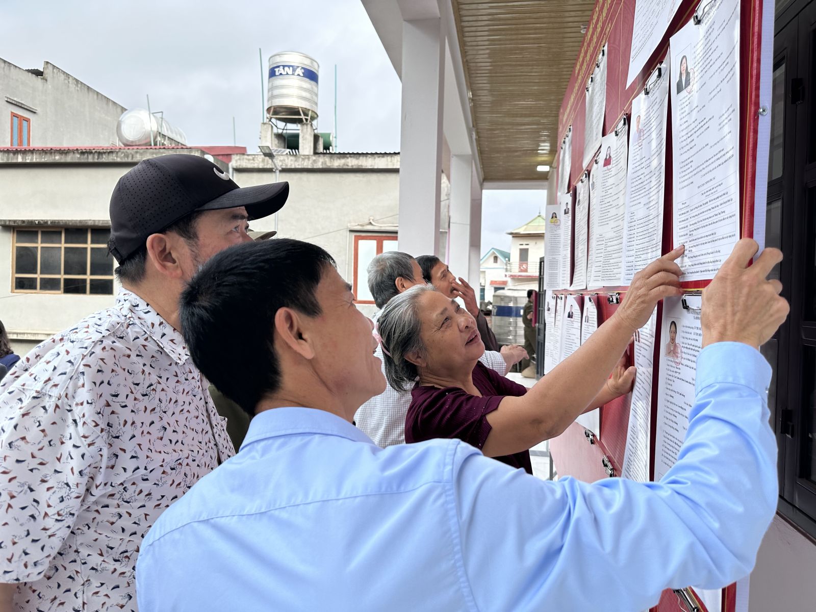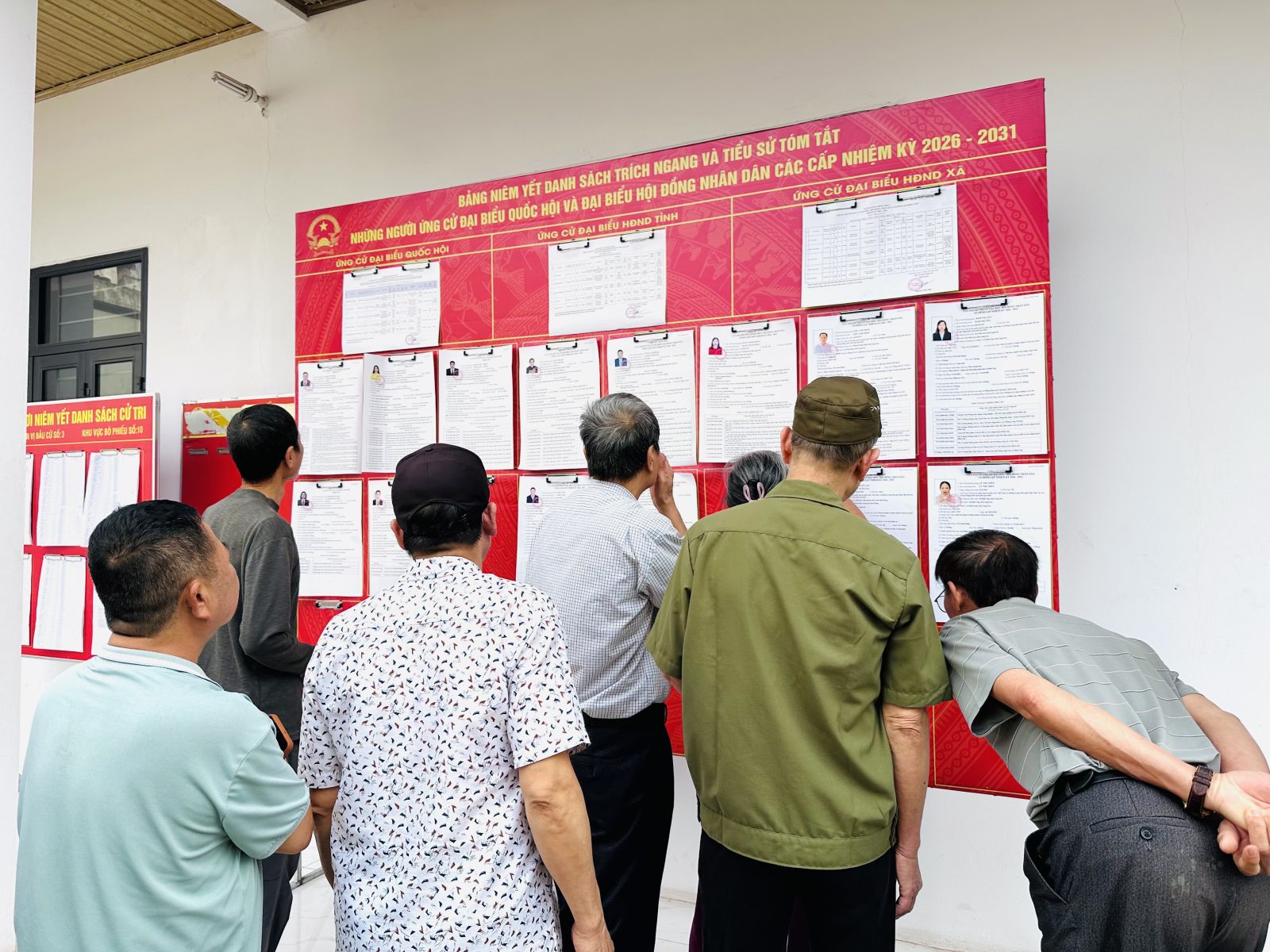 Cử tri nghiên cứu danh sách các ứng cử viên đại biểu HĐND xã nhiệm kỳ 2026-2031