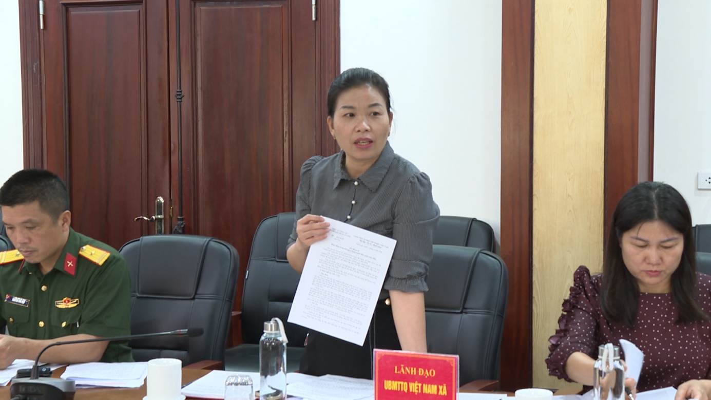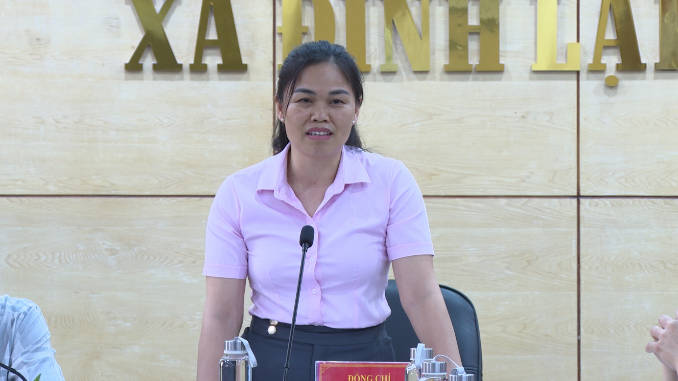 Đồng chí Mã Thu Hồng, Phó Bí thư Thường trực Đảng uỷ xã phát biểu chỉ đạo tại cuộc họp
