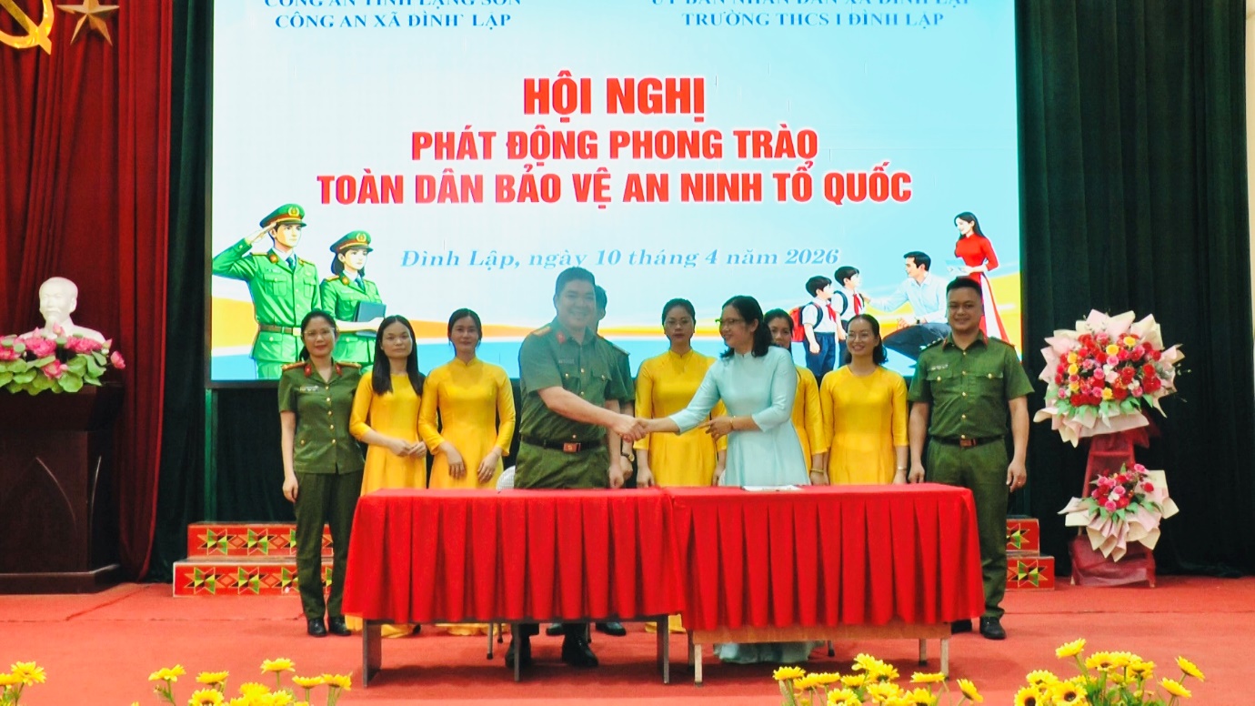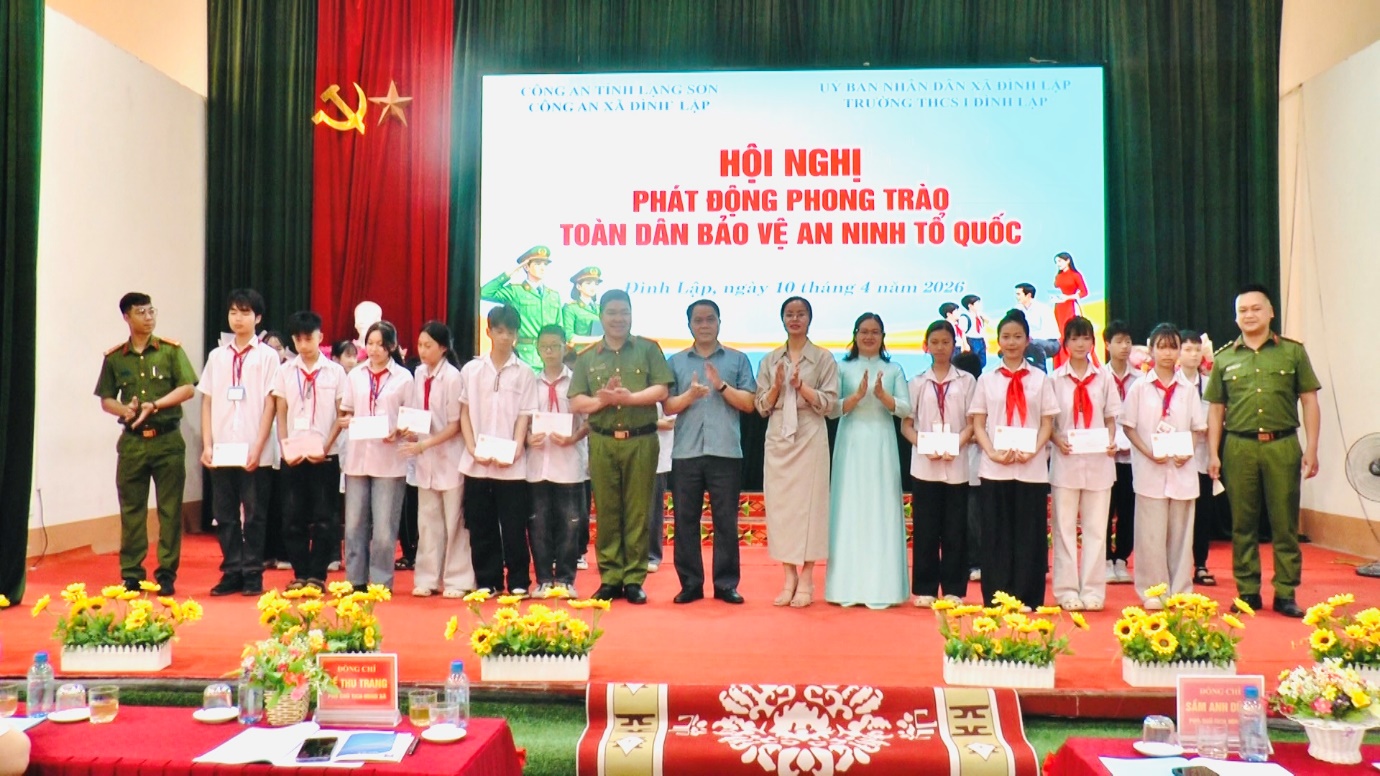 Ngày 10/04/2026, Công an xã Đình Lập phối hợp với Trường THCS I Đình Lập tổ chức hội nghị Phát động phong trào toàn dân bảo vệ an ninh Tổ quốc năm 2026. Dự hội nghị có đồng chí Sầm Anh Dũng, Phó Chủ tịch HĐND xã; Đồng chí Bế Thị Trang, Phó Chủ tịch UBND xã; đại diện lãnh đạo các cơ quan, ban, ngành, đoàn thể xã, bí thư, Trưởng thôn trên địa bàn xã.