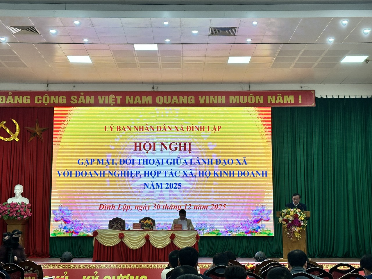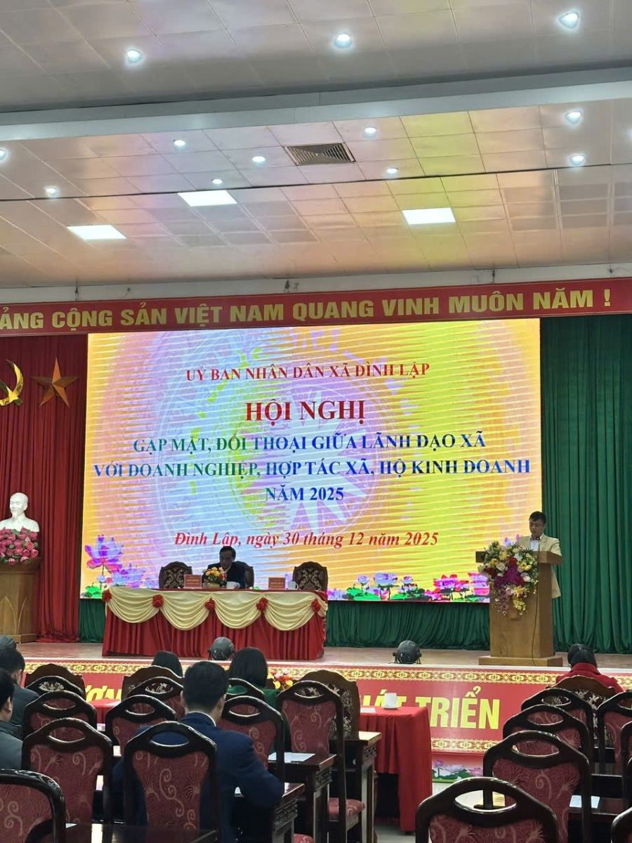 Chiều ngày 30/12/2025, Ủy ban nhân dân xã Đình Lập đã tổ chức Hội nghị gặp mặt, đối thoại giữa Lãnh đạo xã với doanh nghiệp, hợp tác xã, hộ kinh doanh trên địa bàn xã năm 2025.