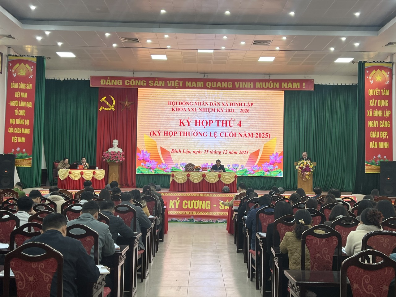 Ngày 25/12/2025, Hội đồng nhân dân (HĐND) xã Đình Lập khóa XXI, nhiệm kỳ 2021 - 2026 đã trọng thể tổ chức Kỳ họp thứ Tư - kỳ họp thường lệ cuối năm để đánh giá tình hình thực hiện kế hoạch phát triển kinh tế - xã hội năm 2025 và quyết định những kế hoạch quan trọng cho năm 2026 cũng như giai đoạn 2026 - 2030.