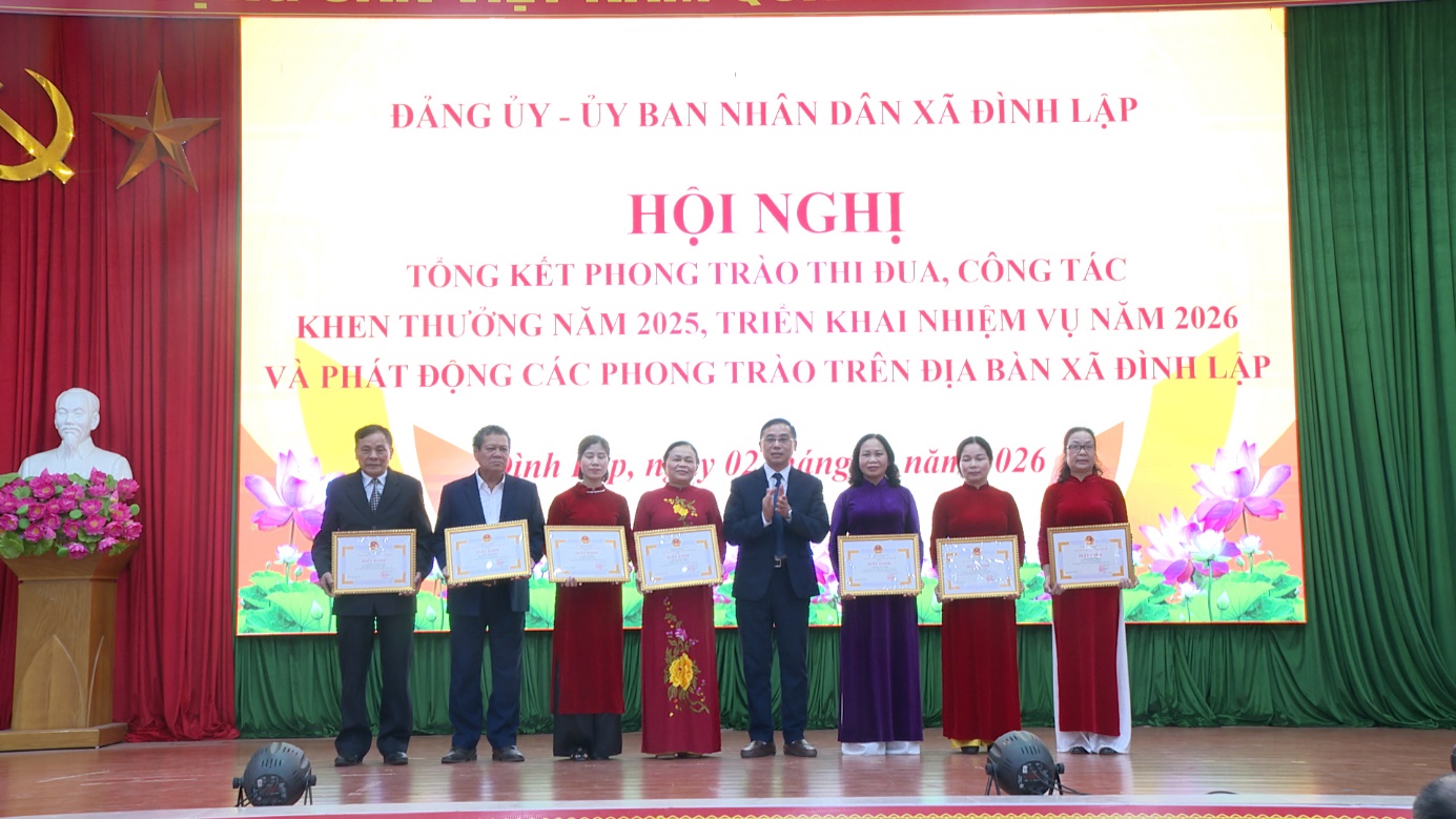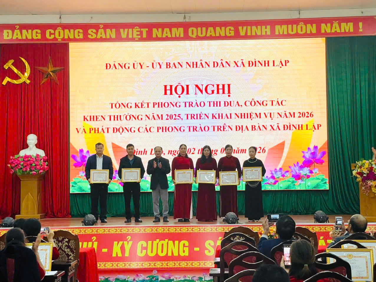 Nhân dịp này, Đảng uỷ, UBND xã Đình Lập đã biểu dương, khen thưởng các tập thể, cá nhân có thành tích xuất sắc trong các phong trào thi đua năm 2025./.