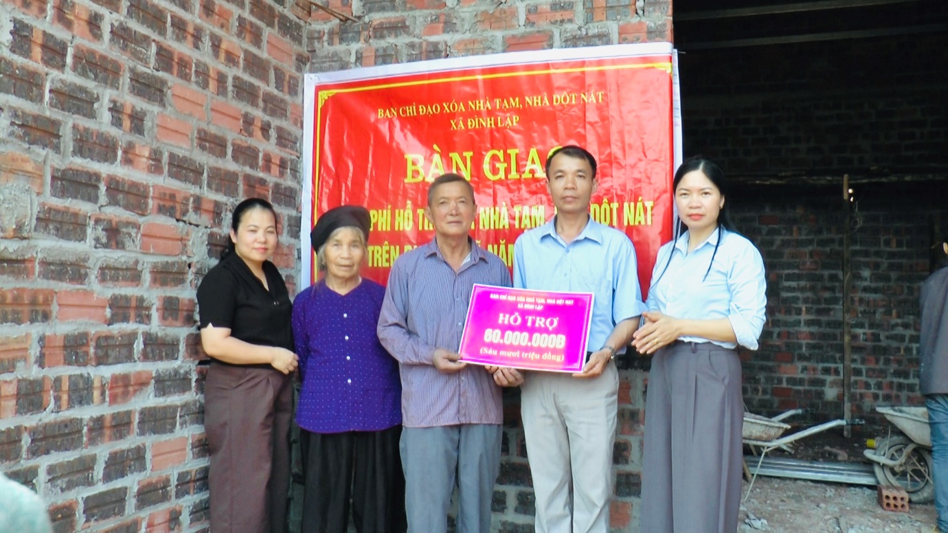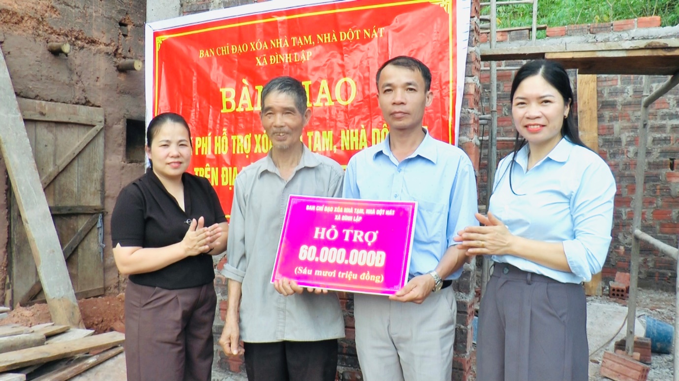 Các hộ được nhận hỗ trợ đều thuộc diện hộ nghèo, cận nghèo, biến đổi khí hậu do thiên tai có nhà ở xuống cấp nghiêm trọng, không đảm bảo điều kiện sinh hoạt, đặc biệt trong mùa mưa bão. Tại buổi trao kinh phí, đoàn đã trực tiếp thăm hỏi, động viên các gia đình khắc phục khó khăn, sớm hoàn thiện xây dựng nhà ở để ổn định cuộc sống. Tổng kinh phí hỗ trợ được huy động từ nguồn ngân sách nhà nước, sự đóng góp của các tổ chức, cá nhân và các nhà hảo tâm trên địa bàn. Mỗi hộ gia đình được hỗ trợ số tiền 60.000.000đ đã góp phần giúp các hộ có điều kiện cải thiện nơi ở, nâng cao chất lượng cuộc sống. Chương trình xoá nhà tạm, nhà dột nát đợt 2 năm 2026, xã Đình lập đã hoàn thành kế hoạch đề ra xoá 14 nhà tạm, nhà dột nát trước 30/4/2026 đã thể hiện tinh thần “tương thân tương ái”, chung tay vì người nghèo, không để ai bị bỏ lại phía sau, góp phần thực hiện hiệu quả công tác an sinh xã hội trên địa bàn./.