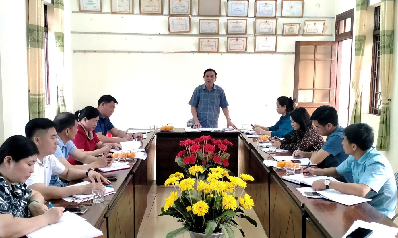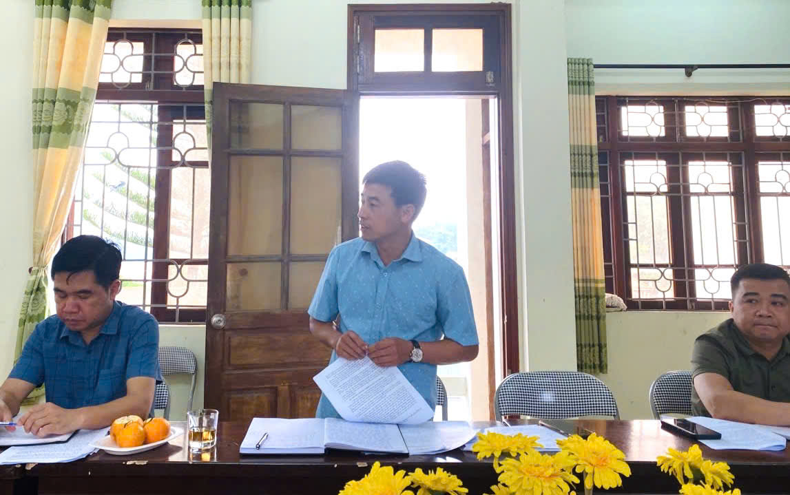 Đồng chí Nguyễn Chiến Hiệp, Phó Bí thư Đảng uỷ, Chủ tịch UBND xã phát biểu kết luận buổi làm việc