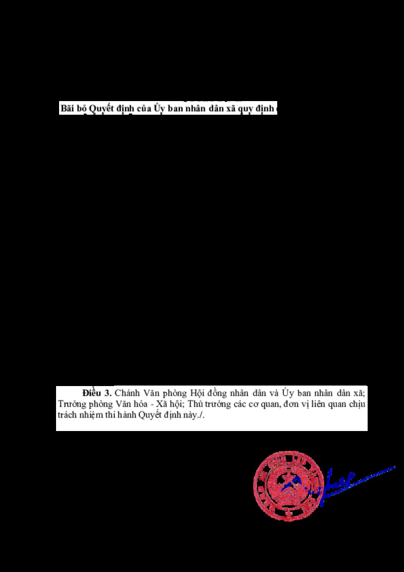 | Tiêu đề văn bản | Quyết định Bãi bỏ Quyết định của Ủy ban nhân dân xã quy định chức năng, nhiệm vụ, quyền hạn và tổ chức bộ máy của Phòng Văn hóa - Xã hội xã Đình Lập | ||